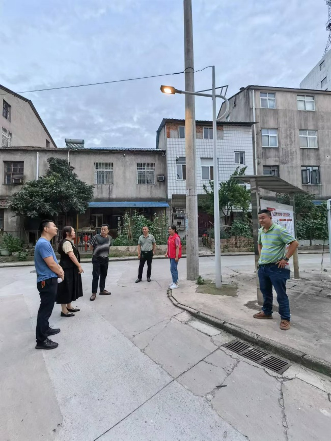 区政协机关主要领导协调区住建局路灯管理所,商讨解决方案。接到任务后,路灯管理所迅速安排专人到蔷薇轩小区逐一走访,全面调查摸底,根据原太阳能路灯的现状,听取居民诉求后,确定了“利用原太阳能灯杆,更换灯具,带市电”运行照明的方案。