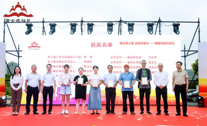 为此,官士墩社区举办了创作大赛颁奖礼并宣布了评选出的五位“社区代言人”。居民李涛、朱德生、陈玉元、黄志农、张利华作品人气最高,成功当选“社区代言人”,张友文、郭朝朋、汤吉阳、刘尚炜分别获得作品最具特色、最具文采、最具创意、最具特色奖。