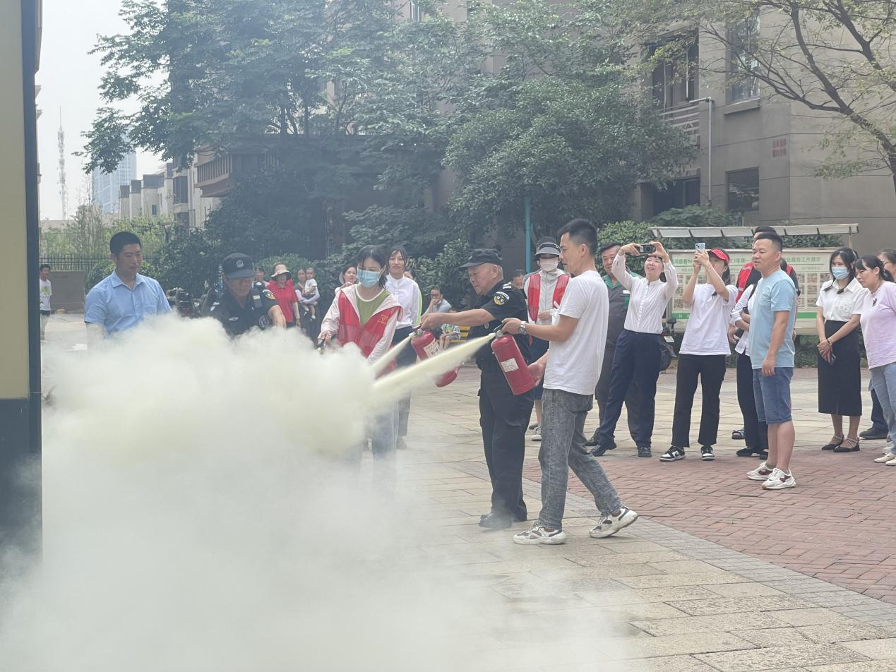 社区应急站负责人向社区志愿者、居民代表讲解了消防器材的使用、维护以及突发火情时的应对技巧,现场演示干粉灭火器以及高压水枪的使用。参加活动的志愿者、居民代表轮番进行实操演练,掌握基本消防安全知识。