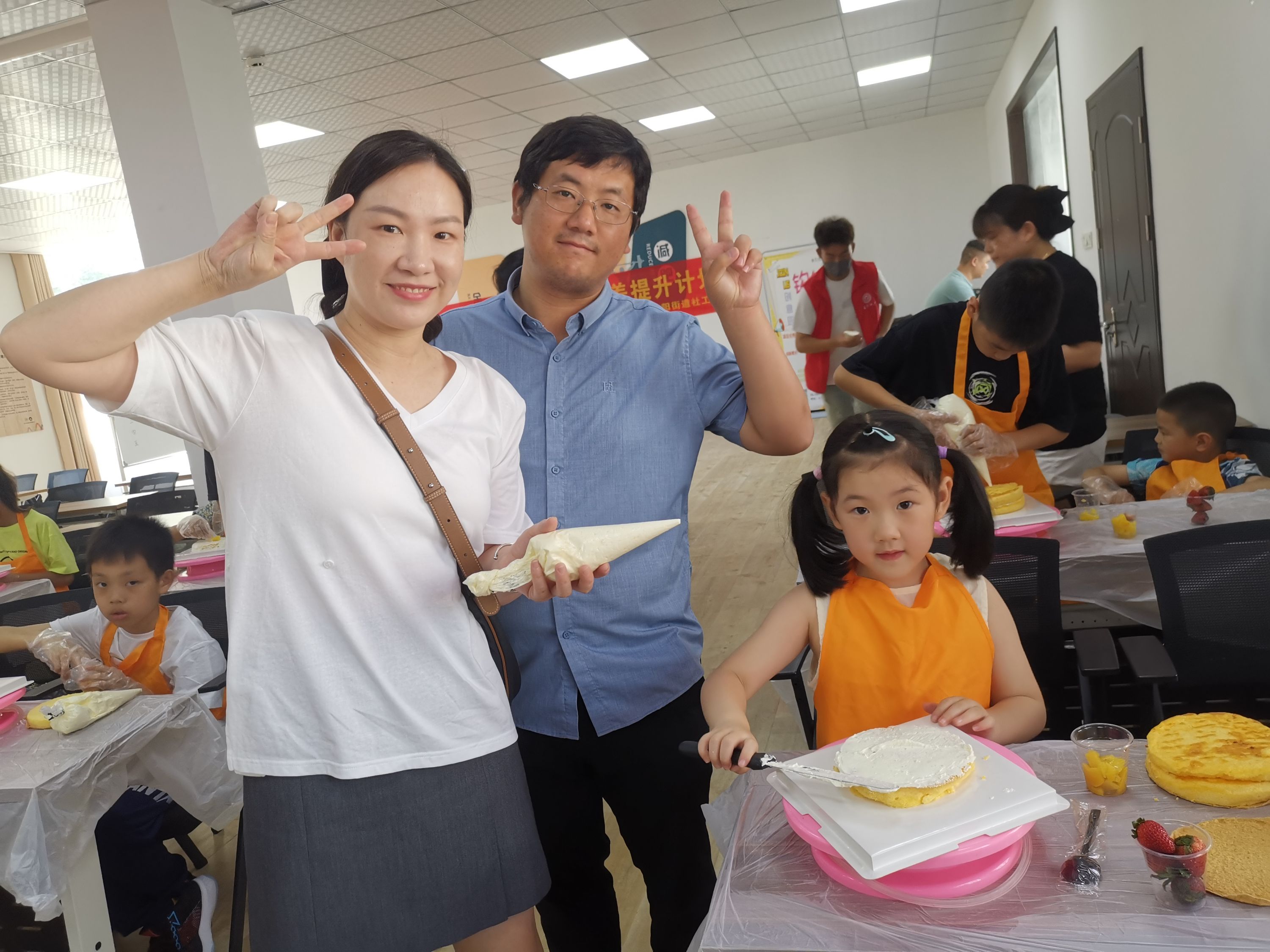 “做蛋糕还是蛮有意思的,一直都想着带孩子尝试。”张妈妈笑着向工作人员说道。在烘焙老师和社区志愿者的协助下,孩子们充分发挥想象力,大显身手,用各色奶油和水果装饰着蛋糕。