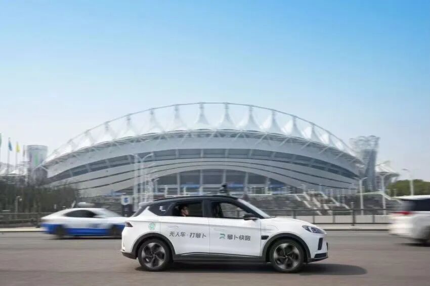 更令我惊奇的是,在“中国车谷”大地上,自觉奔跑着一些白色的、写有“萝卜快跑”字样的出租车,驾驶座上空空荡荡,没有人影(哪怕稻草人),它们像幽灵一样在街巷里出没、游动……只是它们车顶都摆放了一个凸出的车脑似的黑色设备,感应着路况与车况。该区宣传部的吴勇军告诉笔者:目前,武汉经开区境内已投入103辆无人驾驶出租车,您只要下载一个“萝卜快跑” APP,就可以网约打的,乘坐无人驾驶出租车,价格实惠……