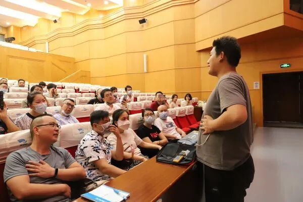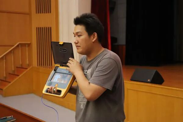 ▲工作人员在线下集中培训活动上讲解AED使用方法。