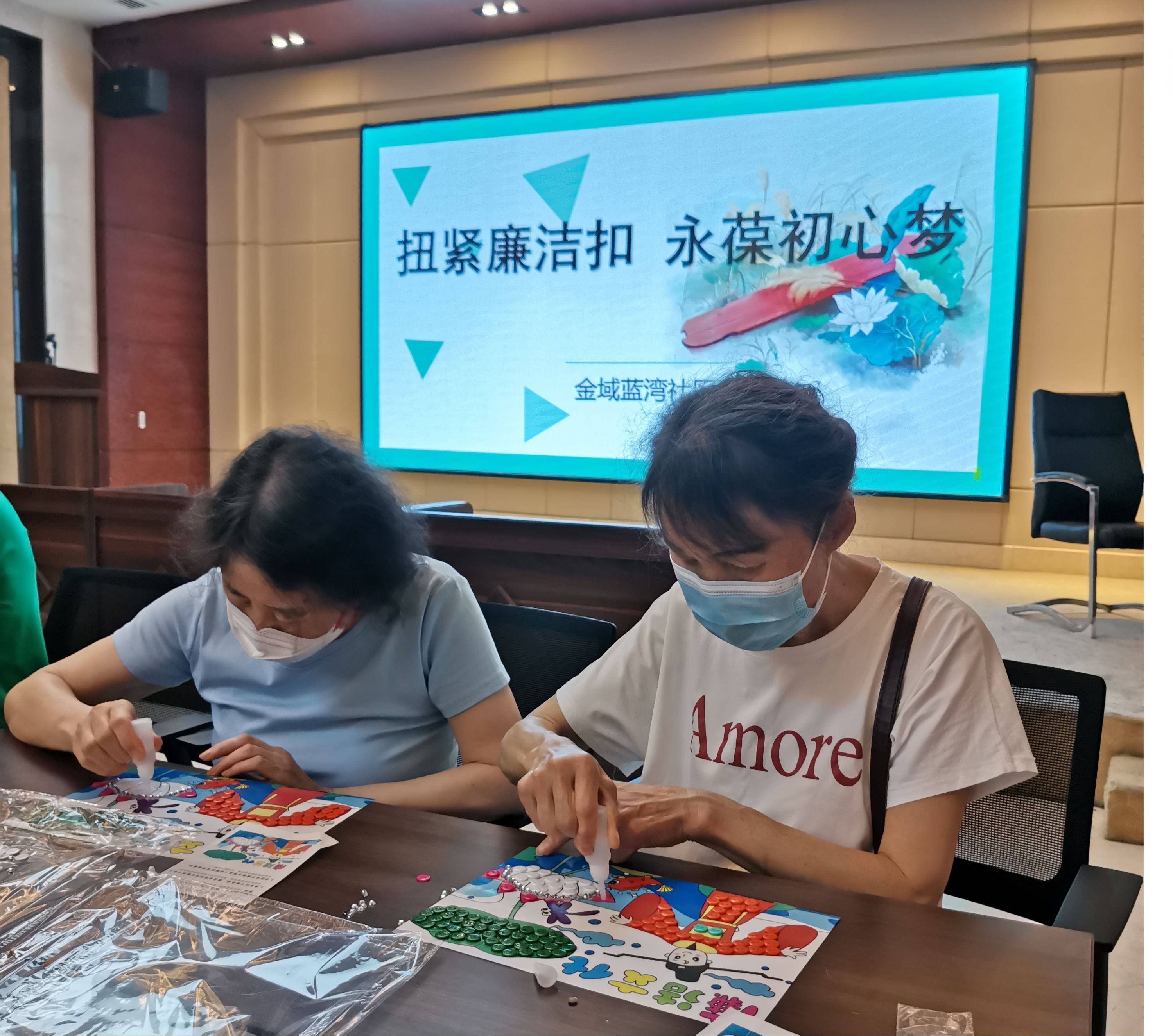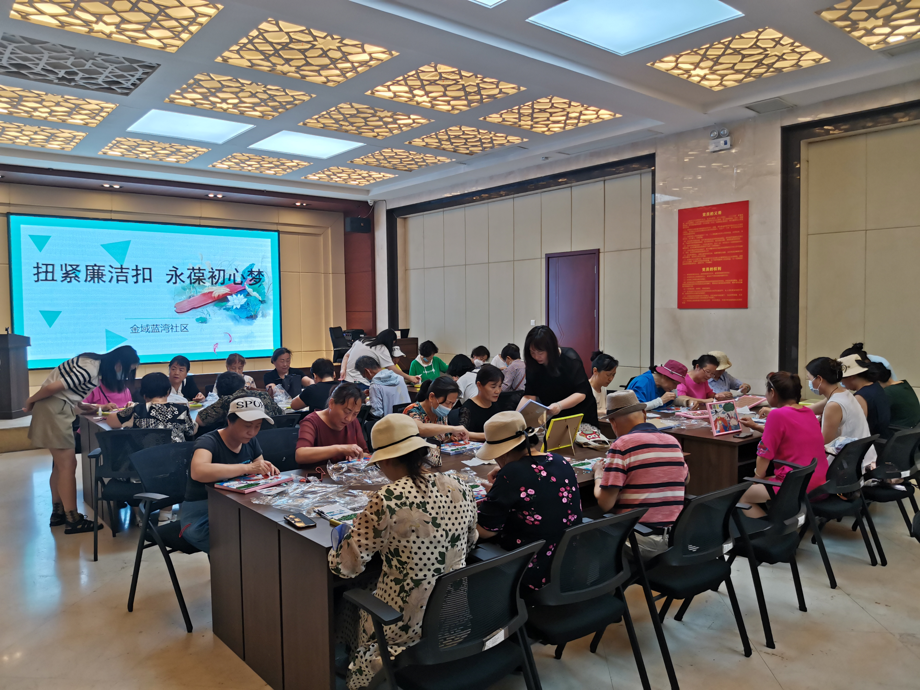 车谷融媒6月19日讯 6月15日,沌阳街道金域蓝湾社区组织开展“扭紧廉洁扣,永葆初心梦”廉洁主题手工活动。