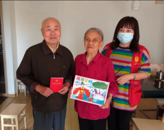 当天,社区纪检委员、社区志愿者走访退休党员,入户宣传党史知识,赠送党章书籍,感谢老党员长期以来为党的事业发展、社区建设方面所作出的贡献,了解老党员身体近况与生活情况,表达关心与关爱之情。