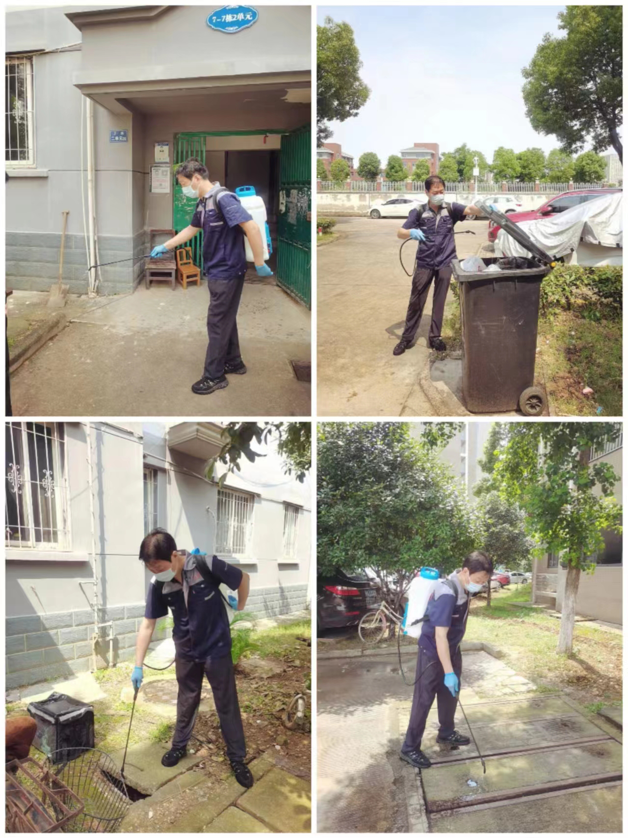当天,党员志愿者和除“四害”消杀工作人员组成清洁小分队,兵分多路进行除“四害”消杀工作。他们身穿“红马甲”,清理卫生死角,铲除蚊虫孳生地及藏身地。除“四害”消杀工作人员带上专业工具,走街串巷,对下水道进行烟雾熏杀,对花圃、居民楼梯口、社区绿化带进行喷雾消杀,用喷雾机对道路外环境喷杀,更换毒鼠饵站的毒饵,对小区每个角落无死角进行消杀。
