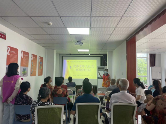 老师邀请老人们分享他们退休后的生活及身体和心理所发生的变化,帮助他们分析出现不良情绪和行为的缓解办法,指导大家运用科学的方式应对,建立良好的人际关系。老师鼓励在场的老人们多结交朋友,多参加社区开展的活动,发掘自己的兴趣爱好,丰富自己的晚年生活。
