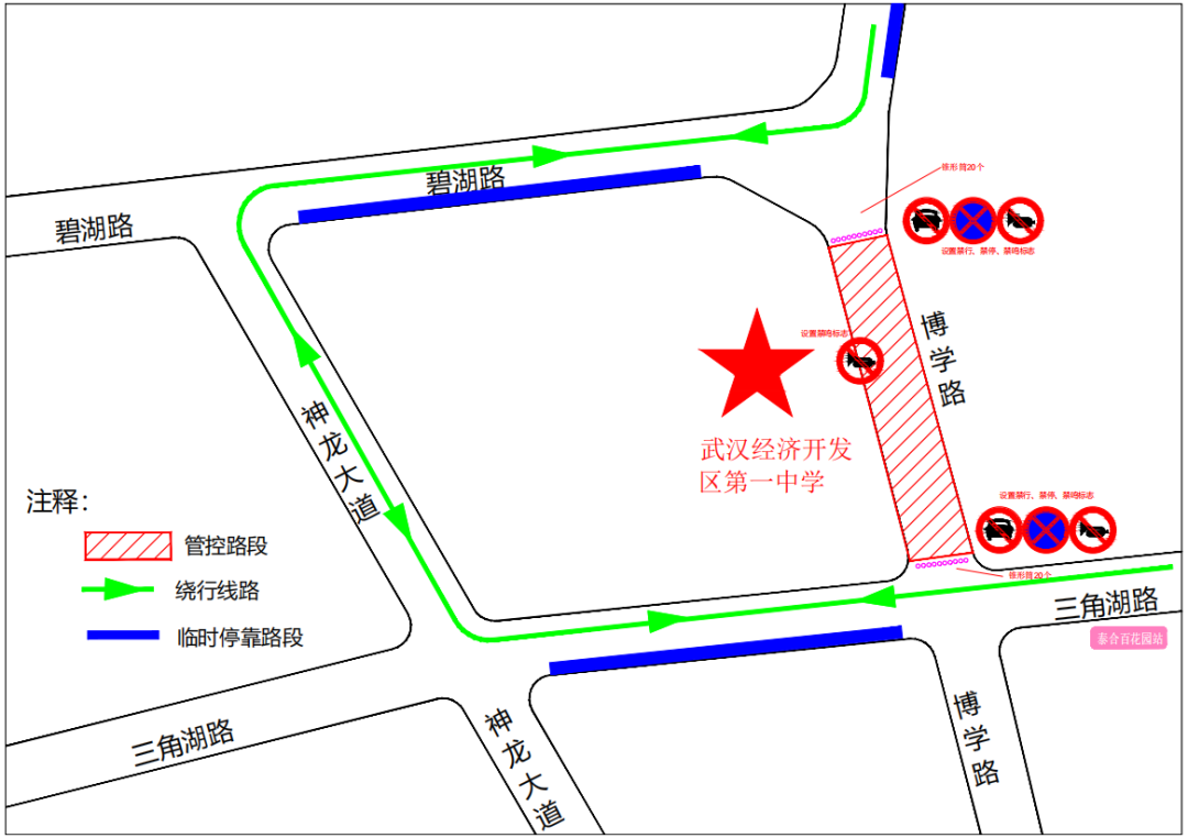为确保中考顺利进行,武汉经开区交管部门将在中考期间对考点周边部分路段实行临时交通管制措施,请市民提前规划出行路线与方式。