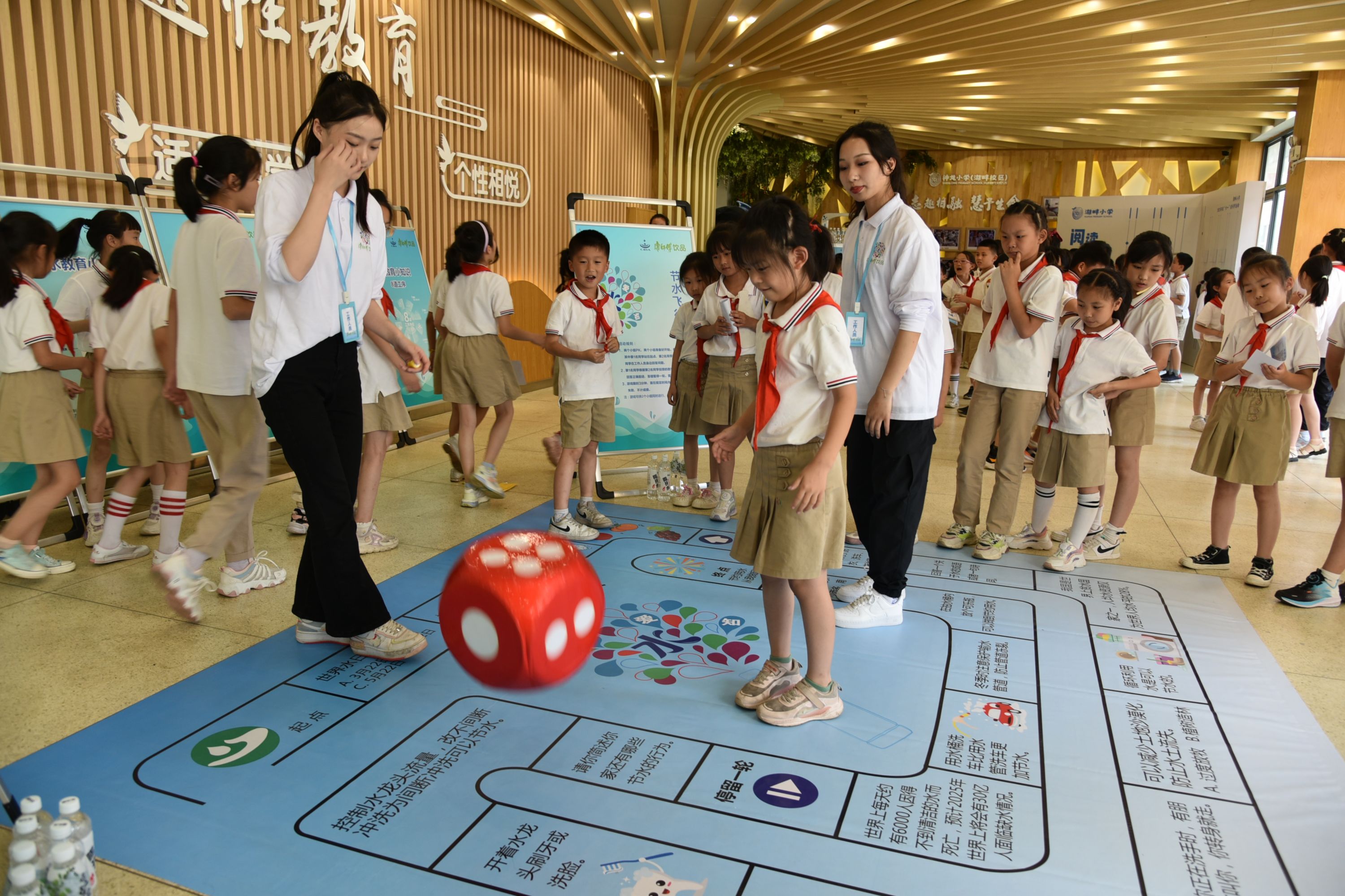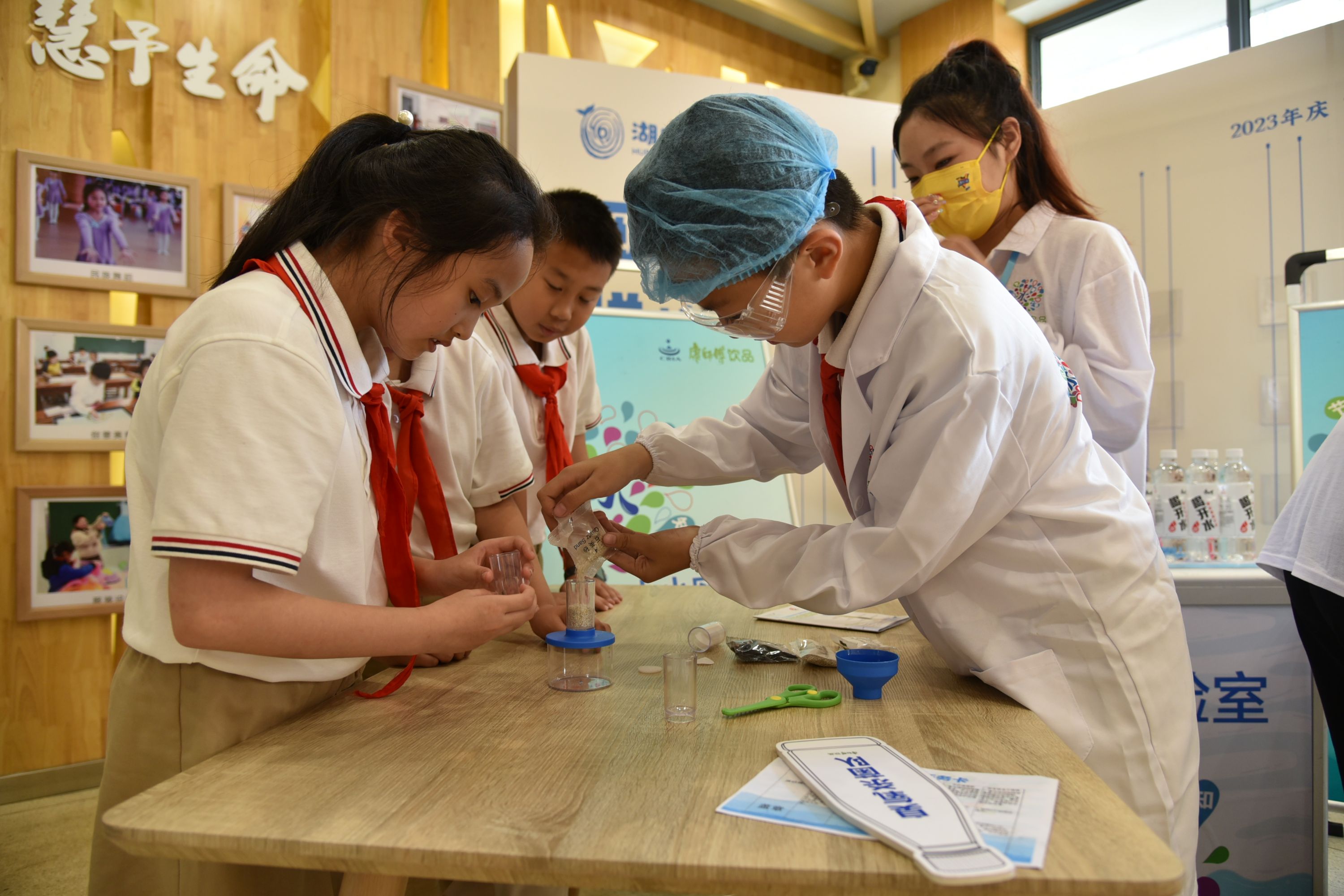 在水教育活动的互动游戏环节,“净水小实验”“节水飞行棋”、“水源地保护”、“安全饮水小挑战”、“PET空瓶回收”,一个个妙趣横生的动手小游戏,充分调动了同学们参与的积极性、主动性。