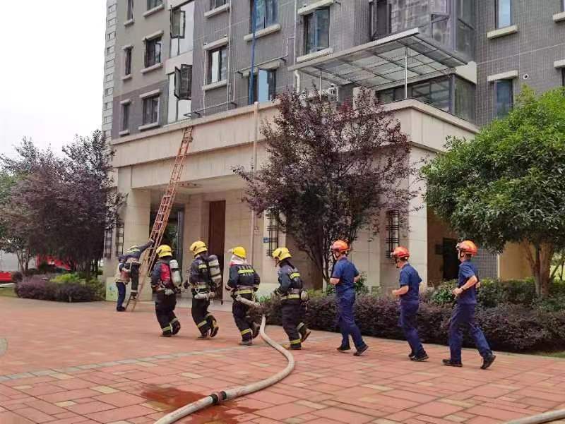 本次活动由武汉经开区消防救援大队组织,沌阳街道平安建设办公室、阳光城社区、润联物业以及周边社区共同参与。演练模拟了高层建筑起火的处置流程,主要开展火灾人员疏散引导、初期火灾扑灭、火灾控制以及现场调度指挥等实战内容。消防员、社区、物业及居民代表组成的演练团队,按照教官的指导有序行动,演练了火势扑灭、疏散逃生等环节。