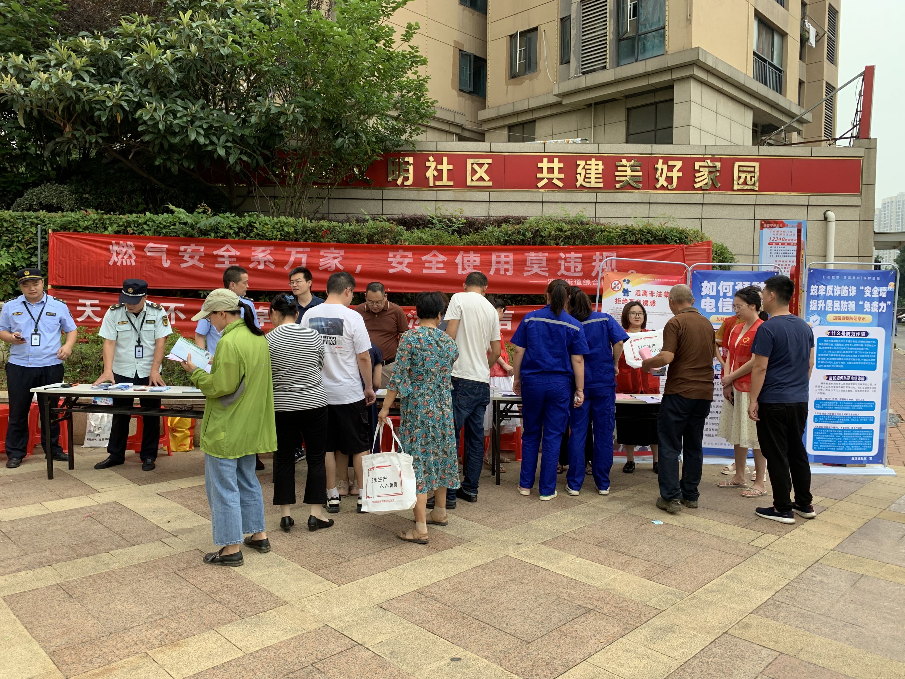 车谷融媒6月20日讯 近日,沌阳街道海滨城社区联合街道平安建设办公室、综合执法中心和车都燃气公司开展“反诈消防齐宣传 共筑安全防护网”宣传活动。