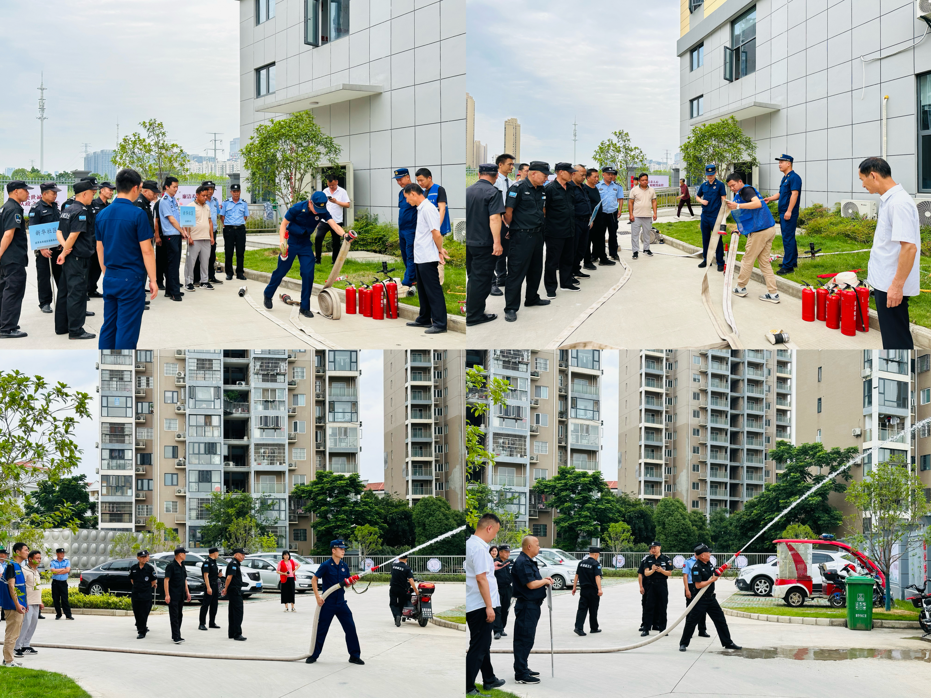 车谷融媒6月20日讯 近日,沌阳街道新华社区组织辖区内4个小区物业应急小分队成员,开展社区2023年度首届“以练为战励精兵 打好防灾主动仗”消防技能大比武活动。
