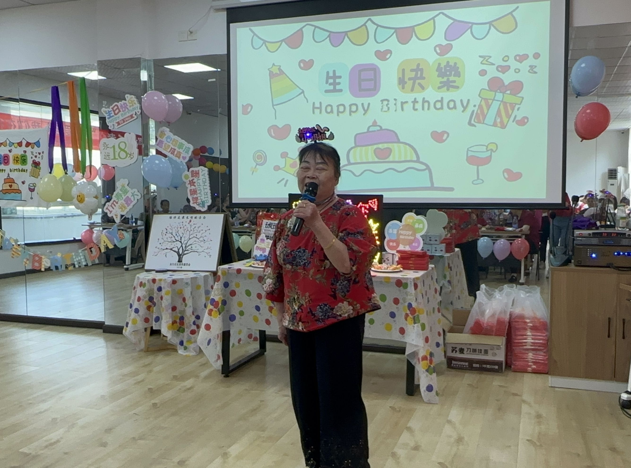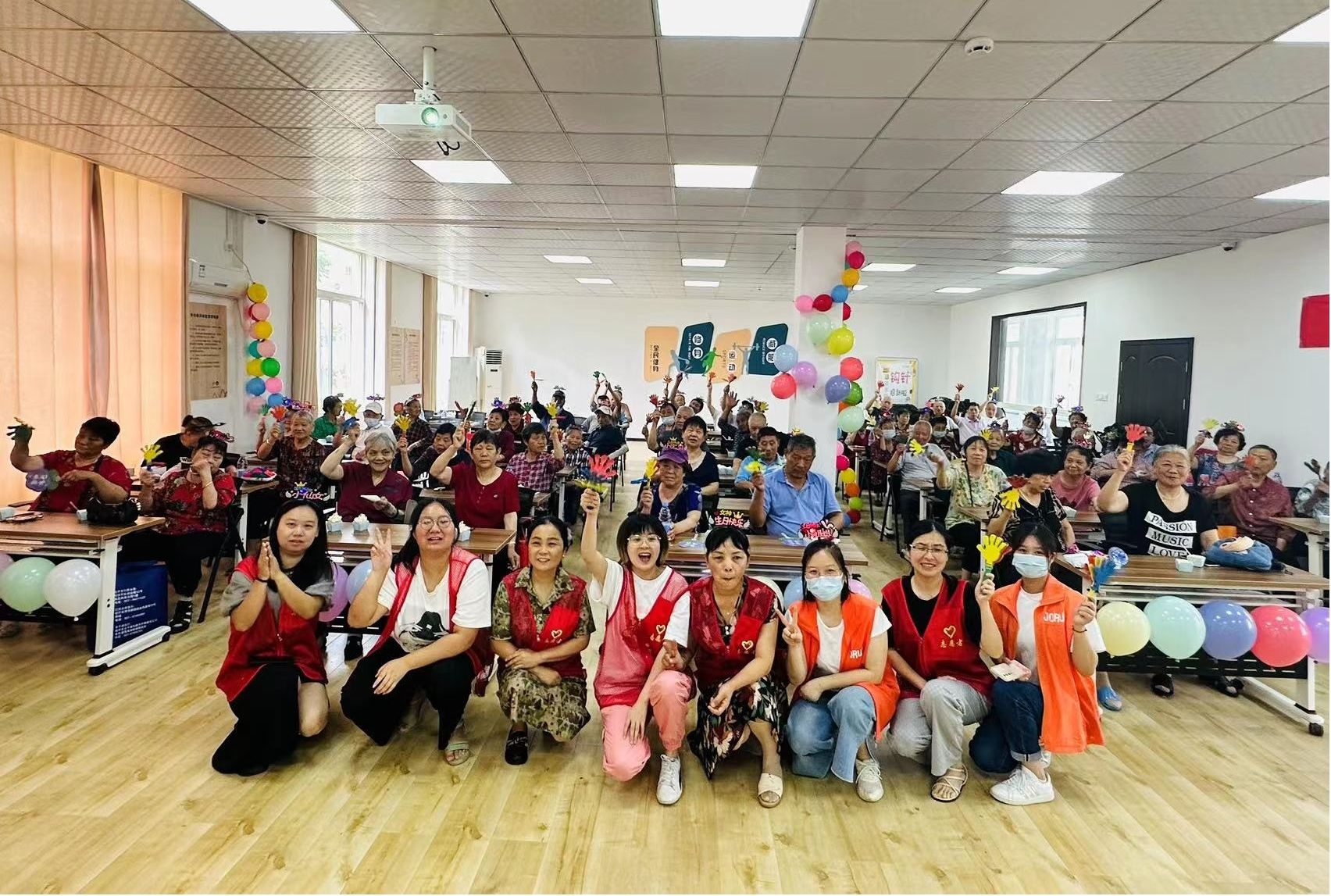 老师在上面讲,爷爷奶奶们发挥着自己的小创意,用心制作着爱心蛋糕、笑脸蛋糕,温馨而美好的生日会在此刻被定格在镜头里,也印刻在70多位爷爷奶奶的脑海里。