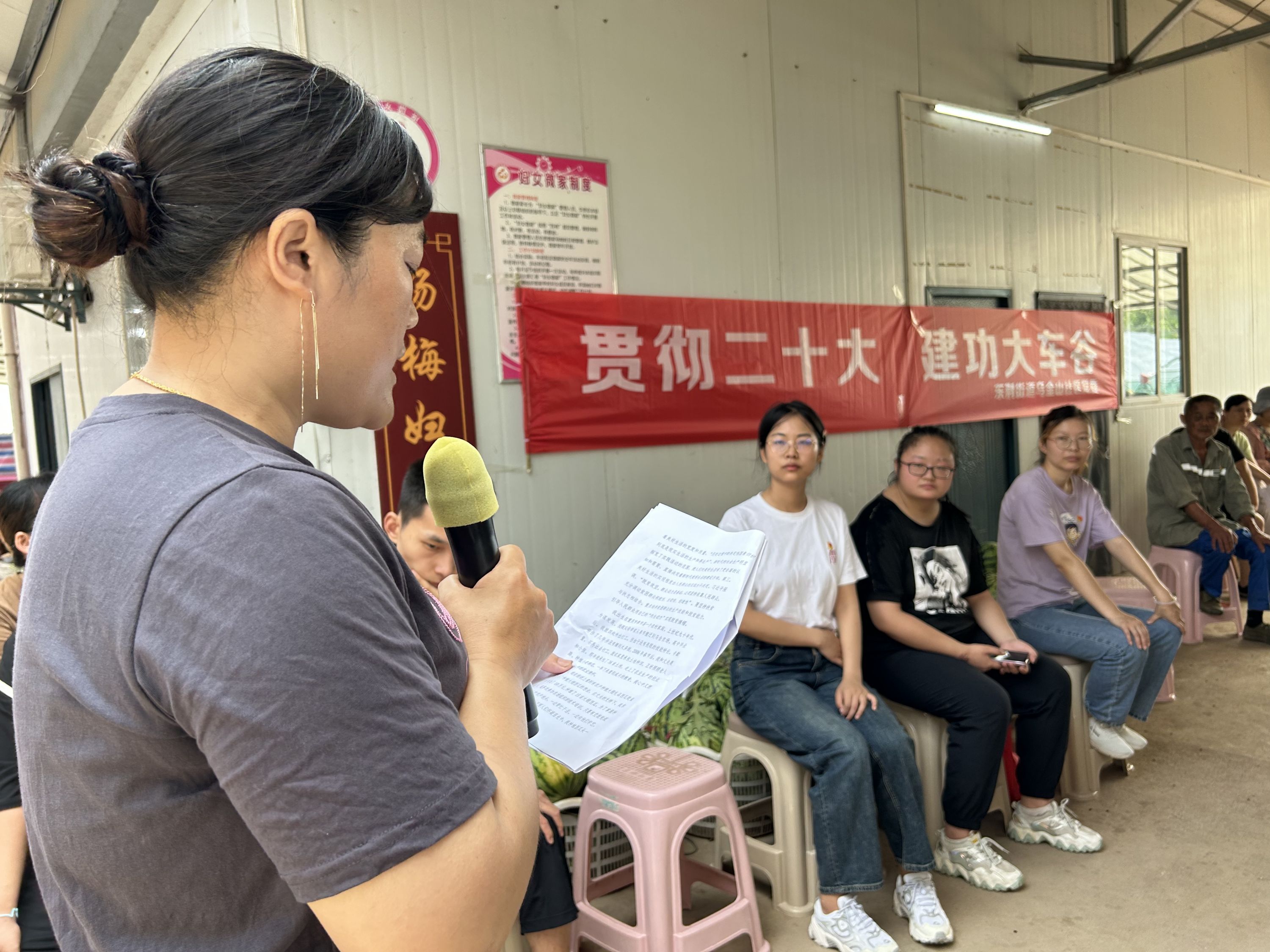 杨梅围绕习近平新时代中国特色社会主义思想和党的二十大精神内容,结合自身创业历程、种植技术,与党员们交流学习心得,分享创业感悟。杨梅带头创业经营家庭农场、采摘园,不仅成为远近闻名的致富带头家庭农场主,还通过教授技术、结对帮扶带动周边村民共同走上致富之路。
