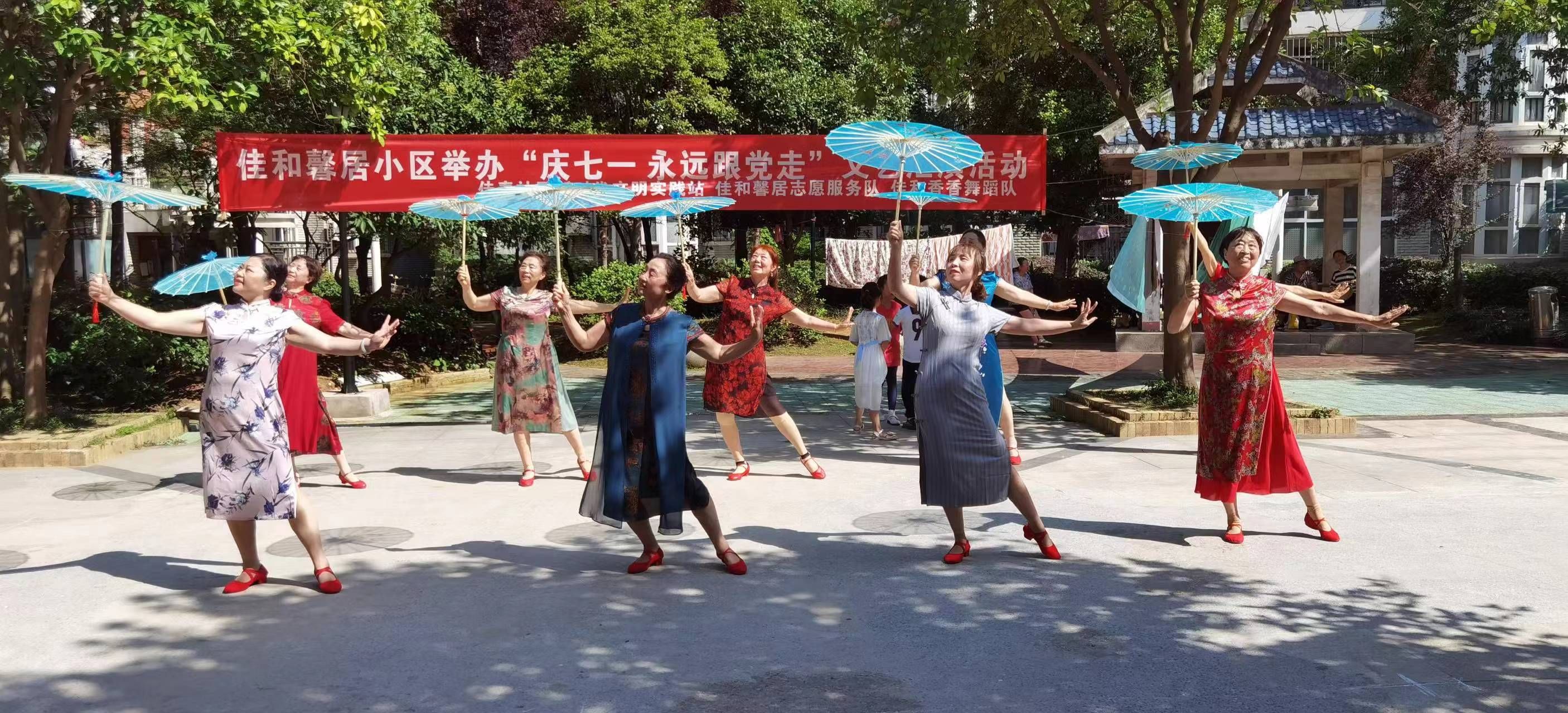车谷融媒6月29日讯 近日,沌阳街道佳泰社区组织辖区退役军人、志愿者团队香香舞蹈队开展“同心颂党恩·共筑佳家美”为主题七一文艺汇演活动。
