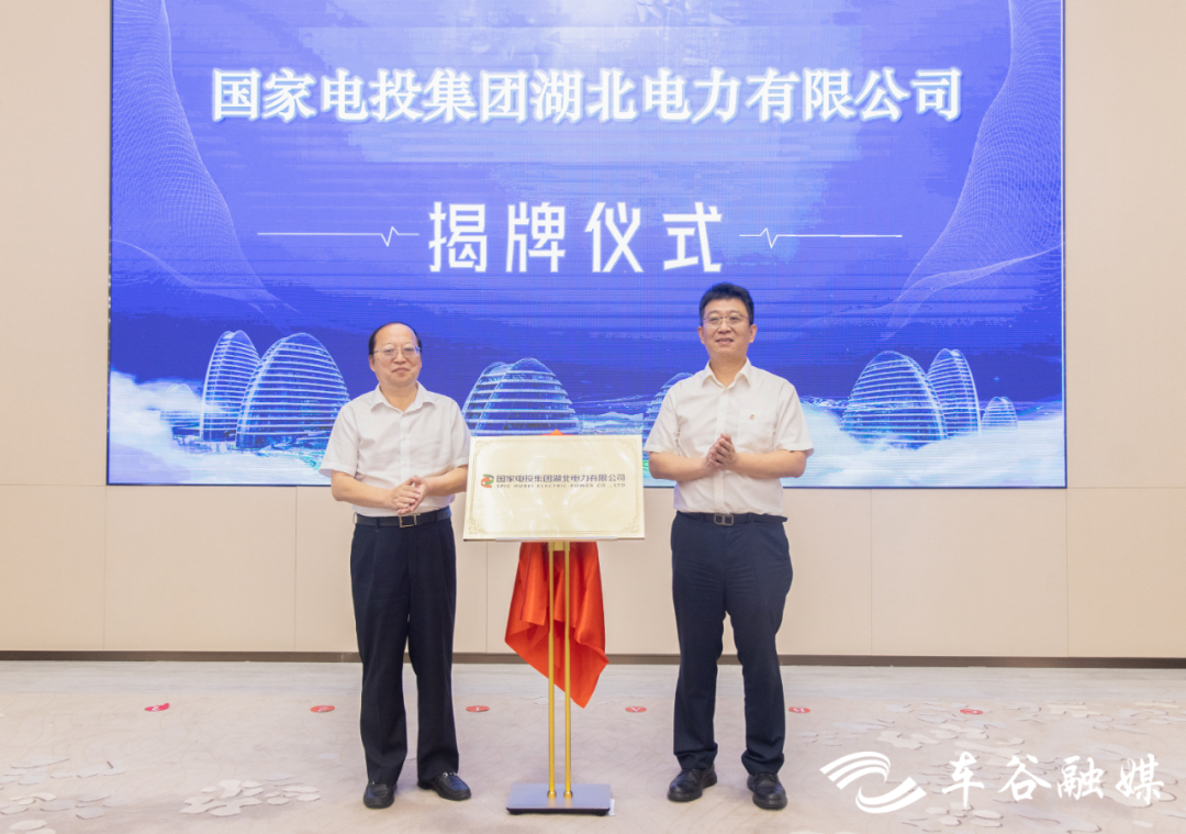 市委常委、武汉经开区工委书记刘子清,国家电投集团湖北电力有限公司党委书记、董事长邹振宇为国家电投集团湖北电力有限公司揭牌。
