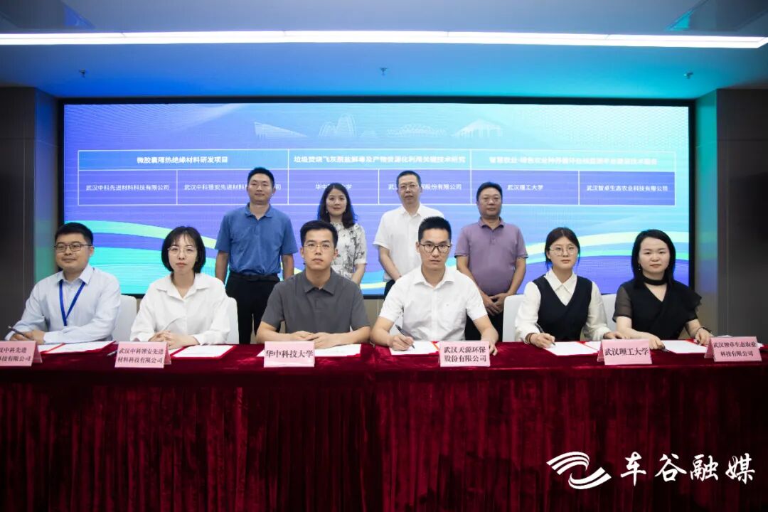 武汉中科先进材料科技有限公司、华中科技大学、武汉理工大学、武汉纺织大学、武汉东湖学院、武汉市农业科学院等科研院所、高校,与武汉中科锂安先进材料科技有限公司、武汉天源环保股份有限公司、武汉智卓生态农业科技有限公司、武汉容晟吉美科技有限公司、湖北驽马新能源科技有限公司等5家武汉经开区企业签约、开展深度合作,新材料、环保、智慧农业、新能源、城市轨道交通等领域的6个科研成果在中国车谷进行中试熟化、转移转化,加速从“书架”走向“货架”。