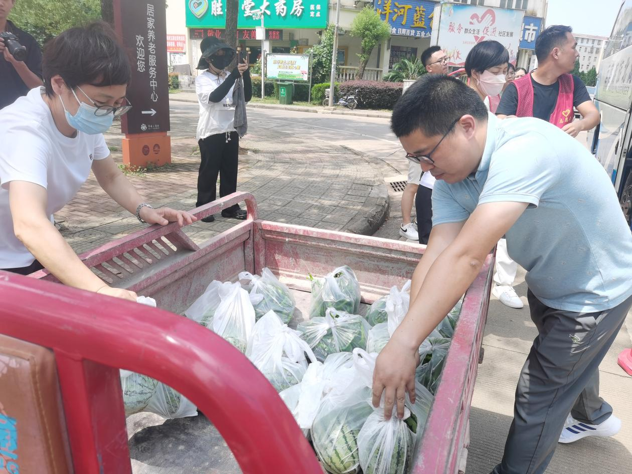 “感谢社区这么热的天还给我们送西瓜,辛苦了,谢谢!”考虑到社区残疾人、高龄老人、独居老人等特殊群体行动不便,网格员上门不仅仅送去果蔬,还提醒老年人夏日注意防暑、合理膳食、适当运动、保重身体健康。