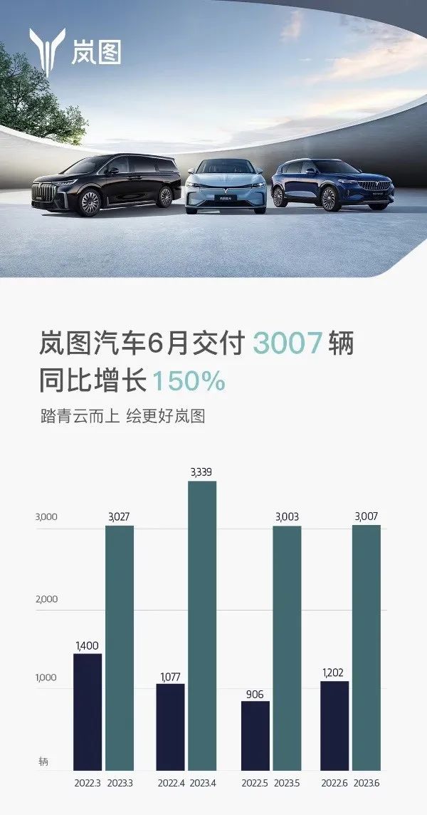岚图汽车CEO卢放表示:“6月份岚图汽车销量稳中向好,综合体系实力进一步凸显。连续四个月保持月销3000辆以上,也证明岚图的品牌力、产品力、技术力和服务能力受到越来越多的用户充分认可。