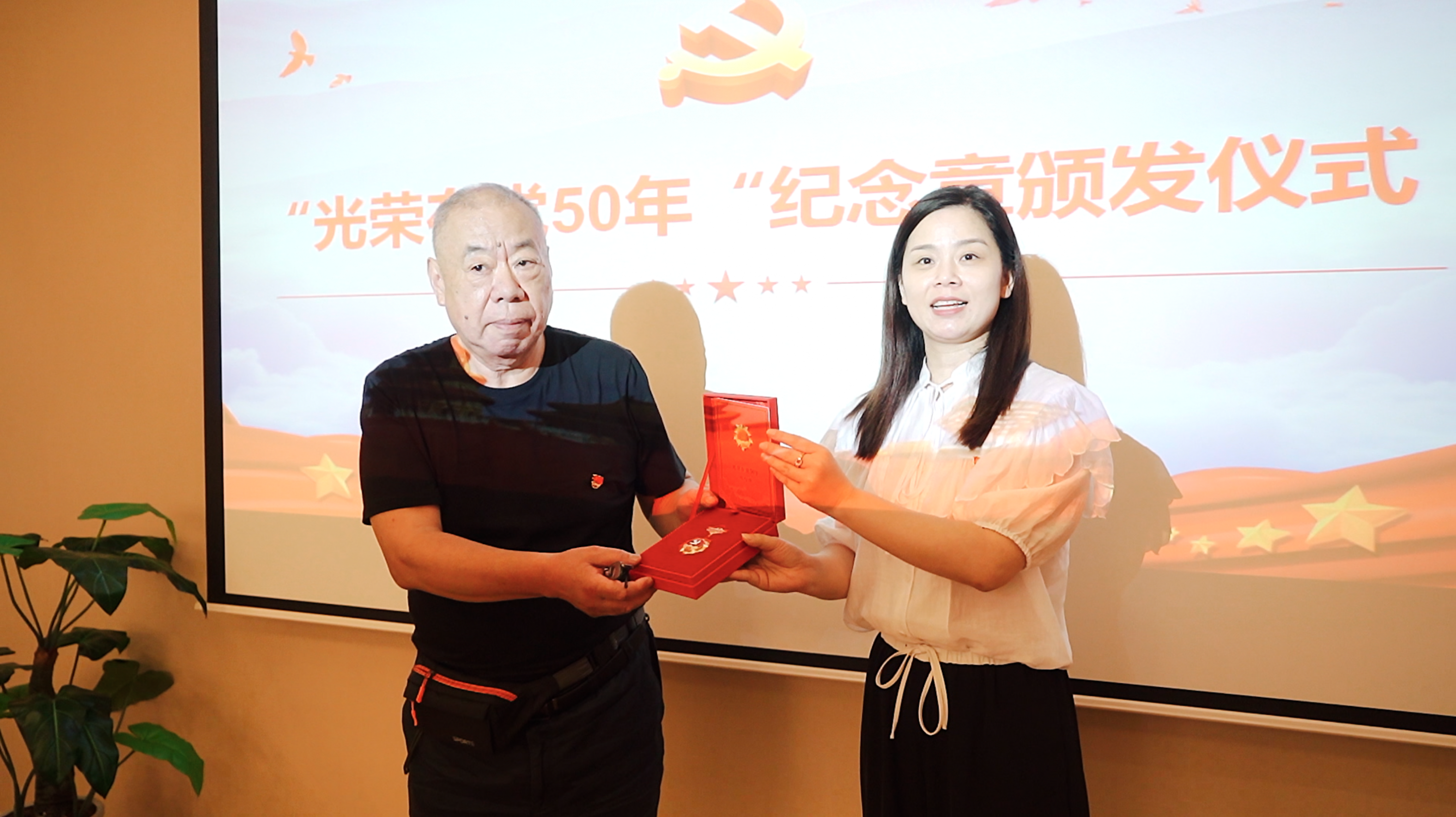 “光荣在党50年”纪念章获得者老党员涂阳生向大家分享自己的入党初心:“我为自己是一名共产党员感到无上光荣!虽然年纪大了,但还是会发挥余热,发挥党员先锋模范作用,支持社区各项工作,为年轻党员树立好榜样。”