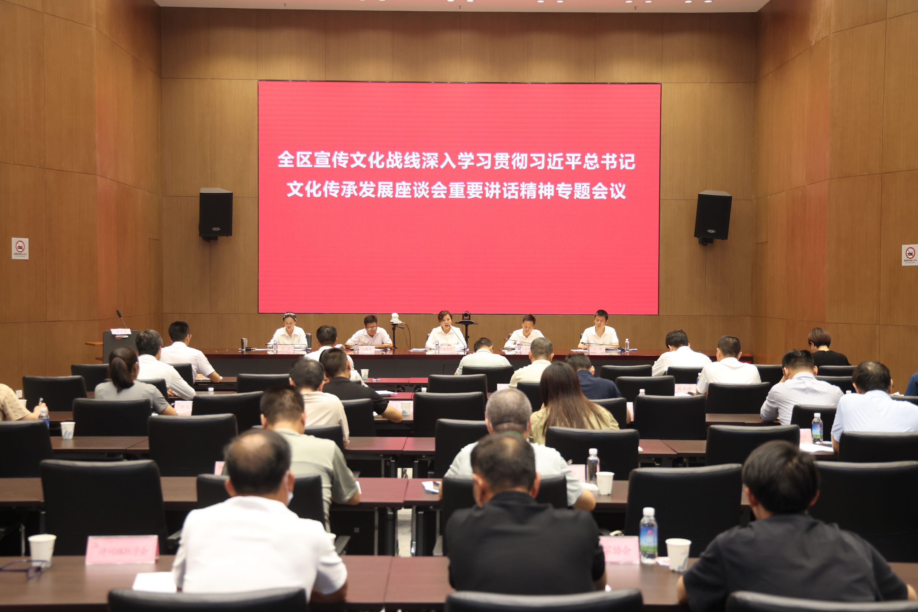 会上,工委宣传部相关负责人传达学习习近平总书记文化传承发展座谈会重要讲话精神、中央专题会议精神、省委、市委工作部署及6月27日全市宣传文化战线深入学习贯彻习近平总书记文化传承发展座谈会精神,区文旅局、军山新城、纱帽街、区融媒体中心、智谷科技5家单位围绕学习贯彻习近平总书记文化传承发展座谈会重要讲话精神作交流发言。