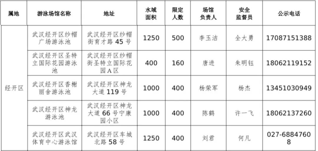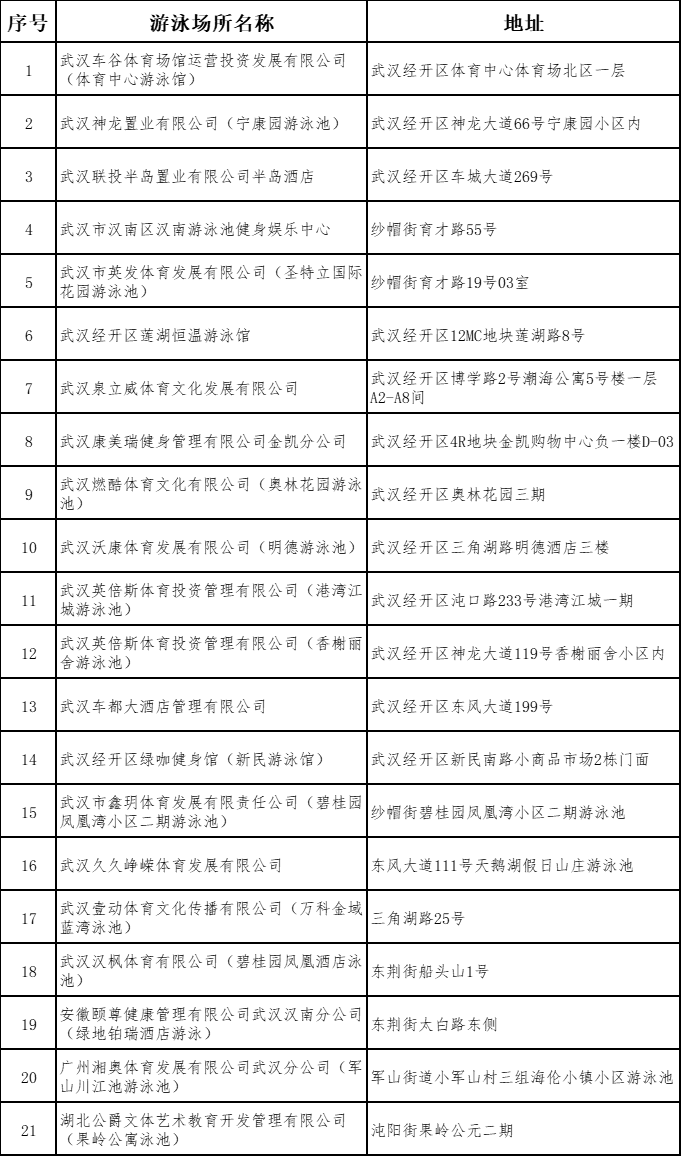 7月10日,记者从武汉经开区体育局获悉,从今日起至8月8日期间,全区5个定点游泳馆免费向辖区义务教育阶段学生开放。具体名单如下: