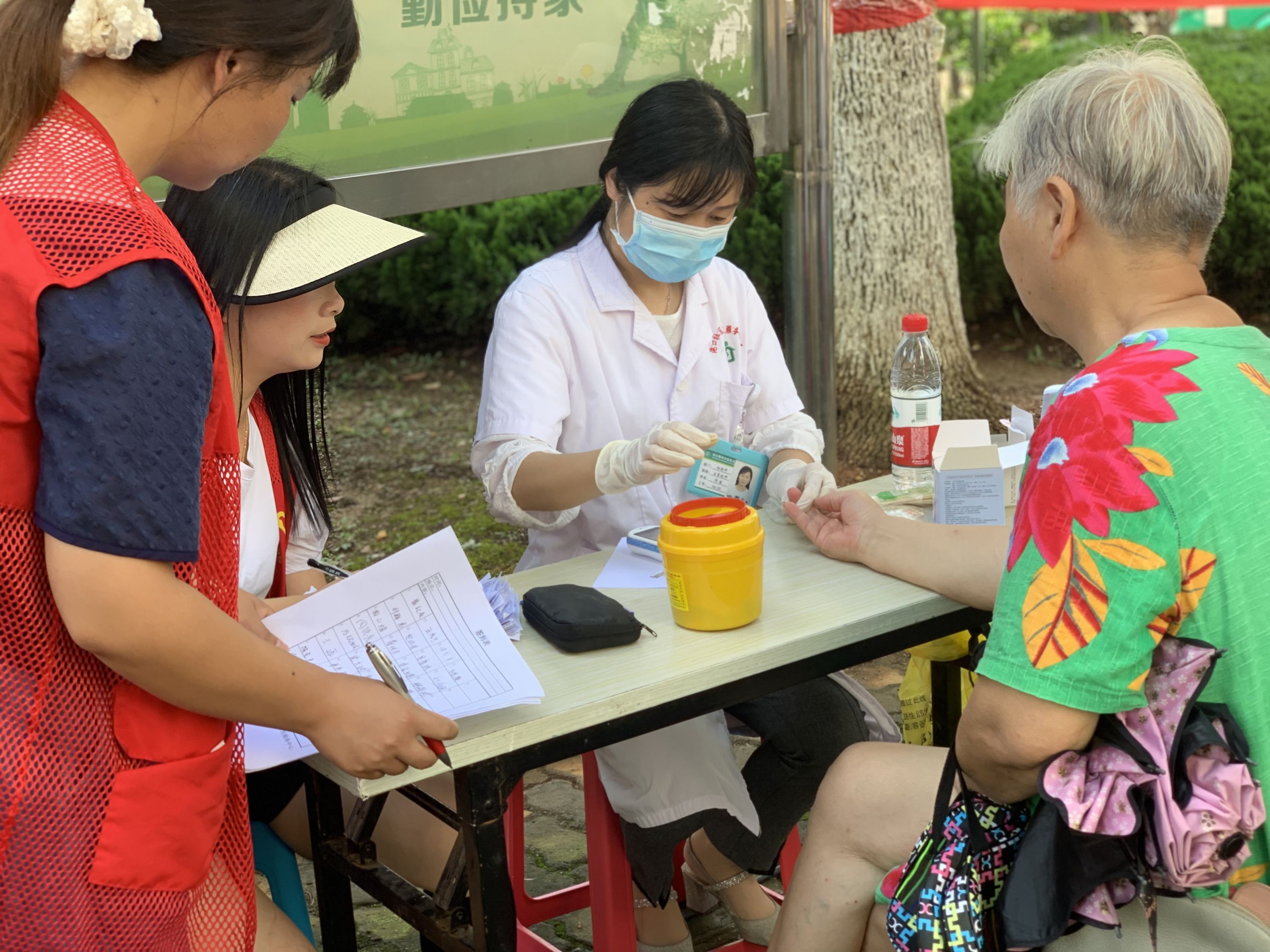 现场还开展义诊服务,医护人员详细询问前来咨询居民的身体情况,为他们进行测量血压、血糖等常规检查,对居民日常生活中的用药、保健、饮食给予指导,耐心回答居民提出的问题。志愿者们还对糖尿病、高血压等慢性病开展健康宣教,普及相关知识。