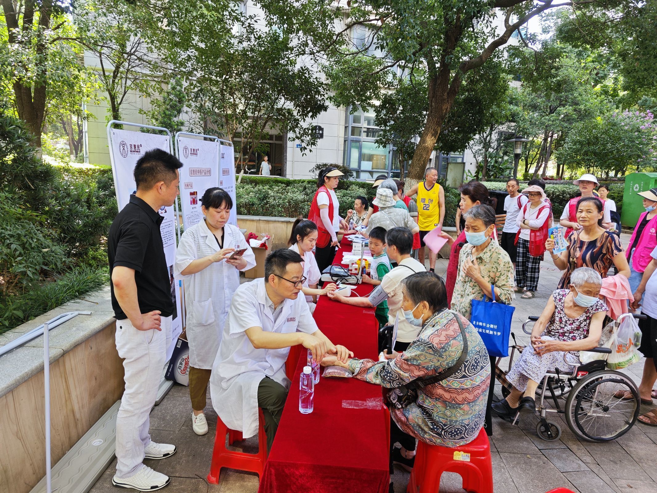 “阿姨,您平时有没有高血压呢?您的高压跟低压都很高呢,这要注意哦。”“我一直有高血压,今天早上出门忘记吃了,我马上回去吃降压片的。”现场还为居民提供量血压、中医针灸、推拿、拔罐等健康义诊项目,吸引了不少居民参与。