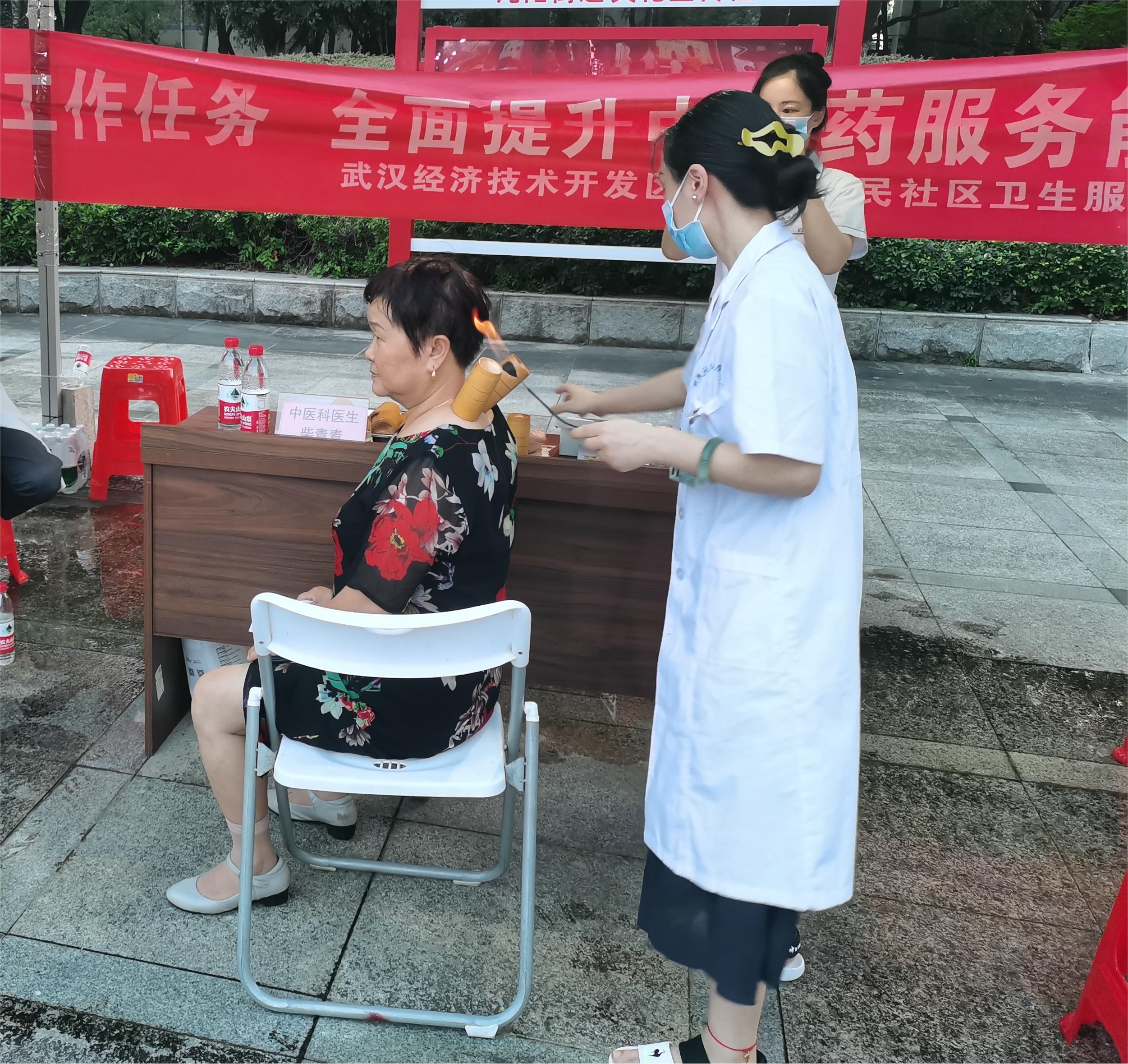 在中医适宜技术体验区,居民王阿姨体验了传统中医治疗方法“三伏贴”,她说道:“三伏贴我年年都贴,它能够冬病夏治,现场都是专业中医,我贴着放心。”在中医养生产品体验区,由武汉同济现代医药科技有限公司准备的中药备受欢迎。