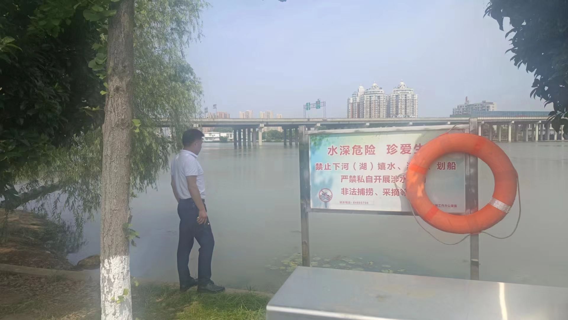 社区负责人到辖区内后官湖绿道边,检查安全设施牢固设备,叮嘱洪山村公司及府郡物业人员定期检查湖边设施,提醒青少年增强防溺水意识,远离不明水域。