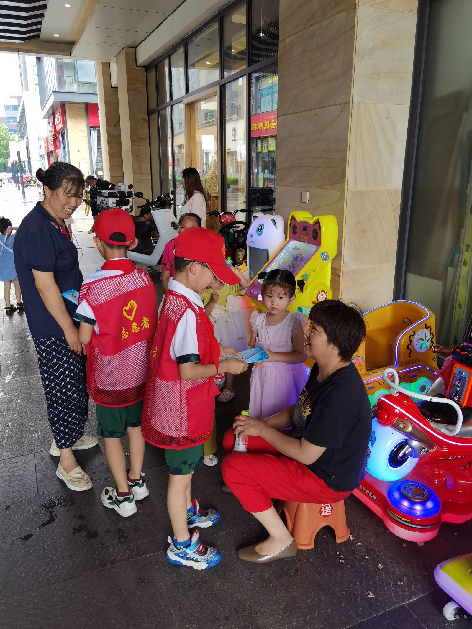 当天,孩子们化身小小志愿者,在社区应急志愿服务队的陪同下,来到了泰富城商圈,向商户和居民宣传防溺水知识,发放防溺水宣传手册,号召大家学习“六不一会四牢记”及“八措施”等防溺水小知识。