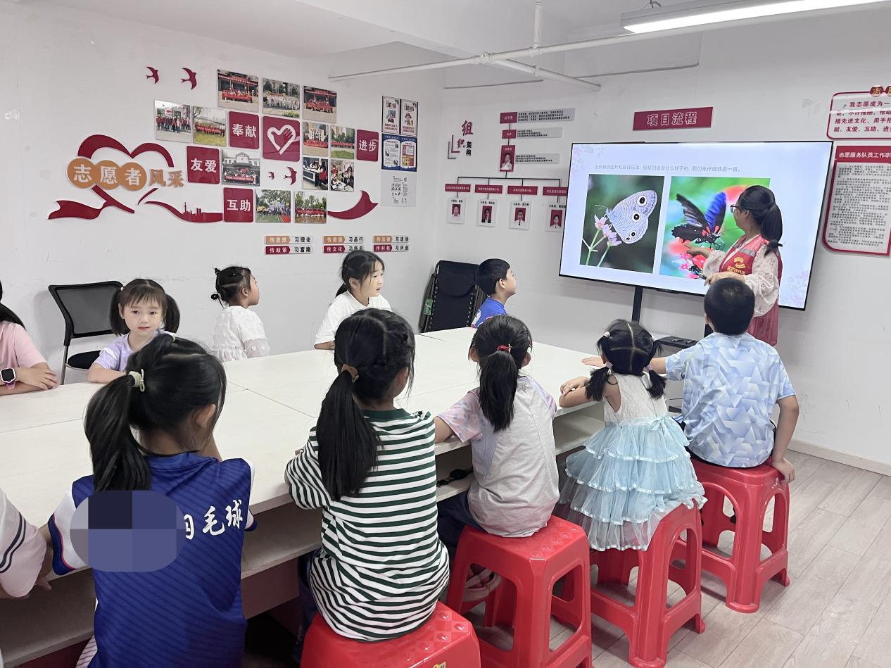 社区志愿者带着孩子们通过猜与蝴蝶有关的谜语如“湖水清清帆影叠,浅草离离旧叶多”“月下桅帆两片去,桥头怀古三十载”等,引出此次科普活动的主角——蝴蝶。志愿者图文并茂地带领孩子们了解了蝴蝶的种类、外形、习性、特征及生存现状等,极大地激发了孩子们对昆虫和大自然的兴趣。