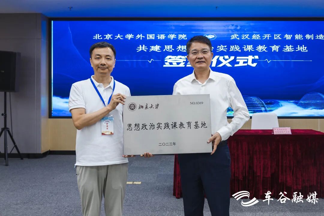 北京大学外国语学院(简称北大外院)思想政治实践课教育基地同日落户武汉经开区智能制造产业园,该基地是北大外院在武汉建立的第一个思想政治实践课教育基地,将为北大外院师生提供丰富多样的实践教学活动,帮助北大外院师生更加深入了解国情社情。
