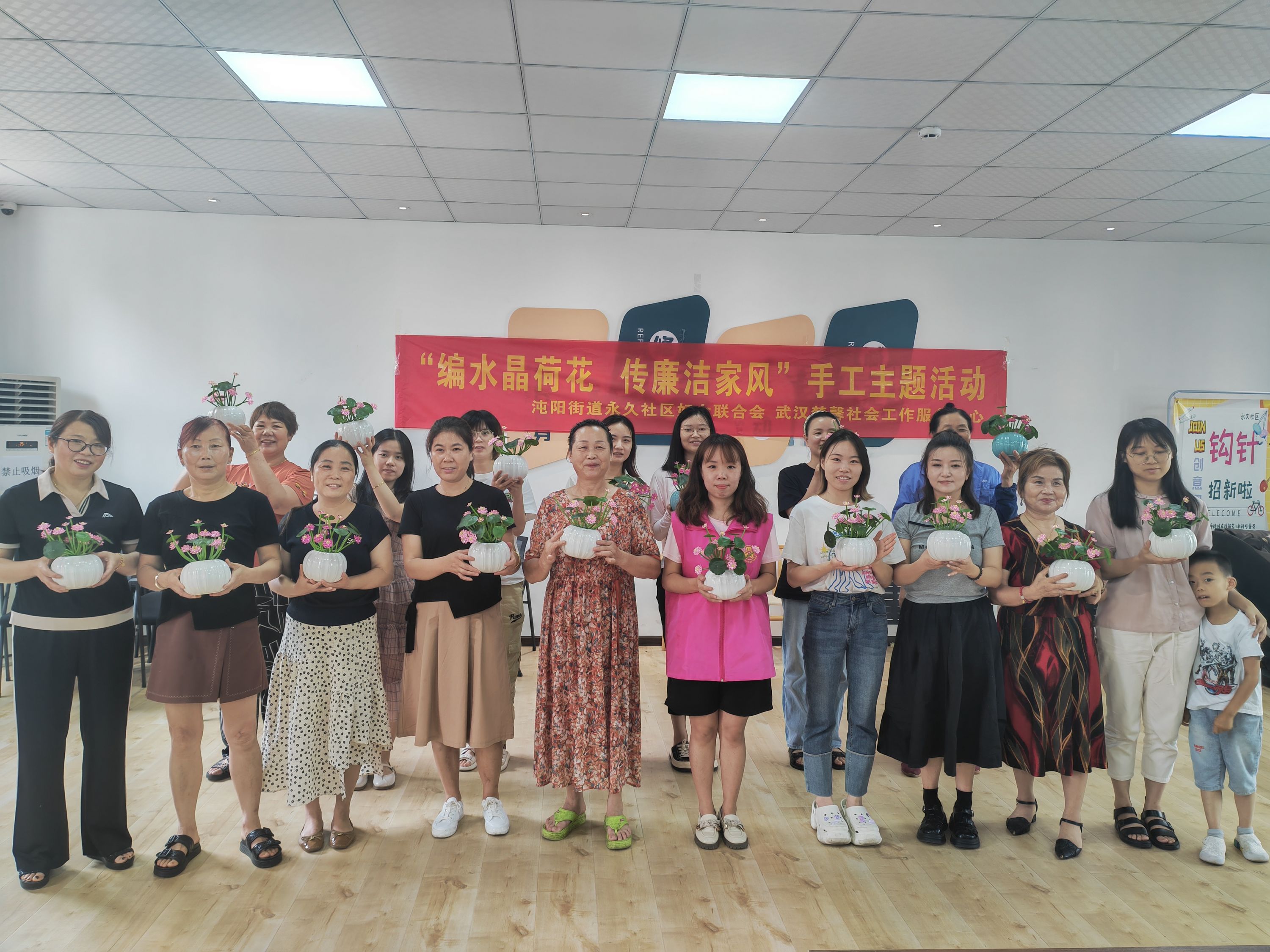 车谷融媒7月21日讯 7月19日上午,沌阳街道永久社区妇联开展“编水晶荷花,传廉洁家风”手工荷花制作活动。
