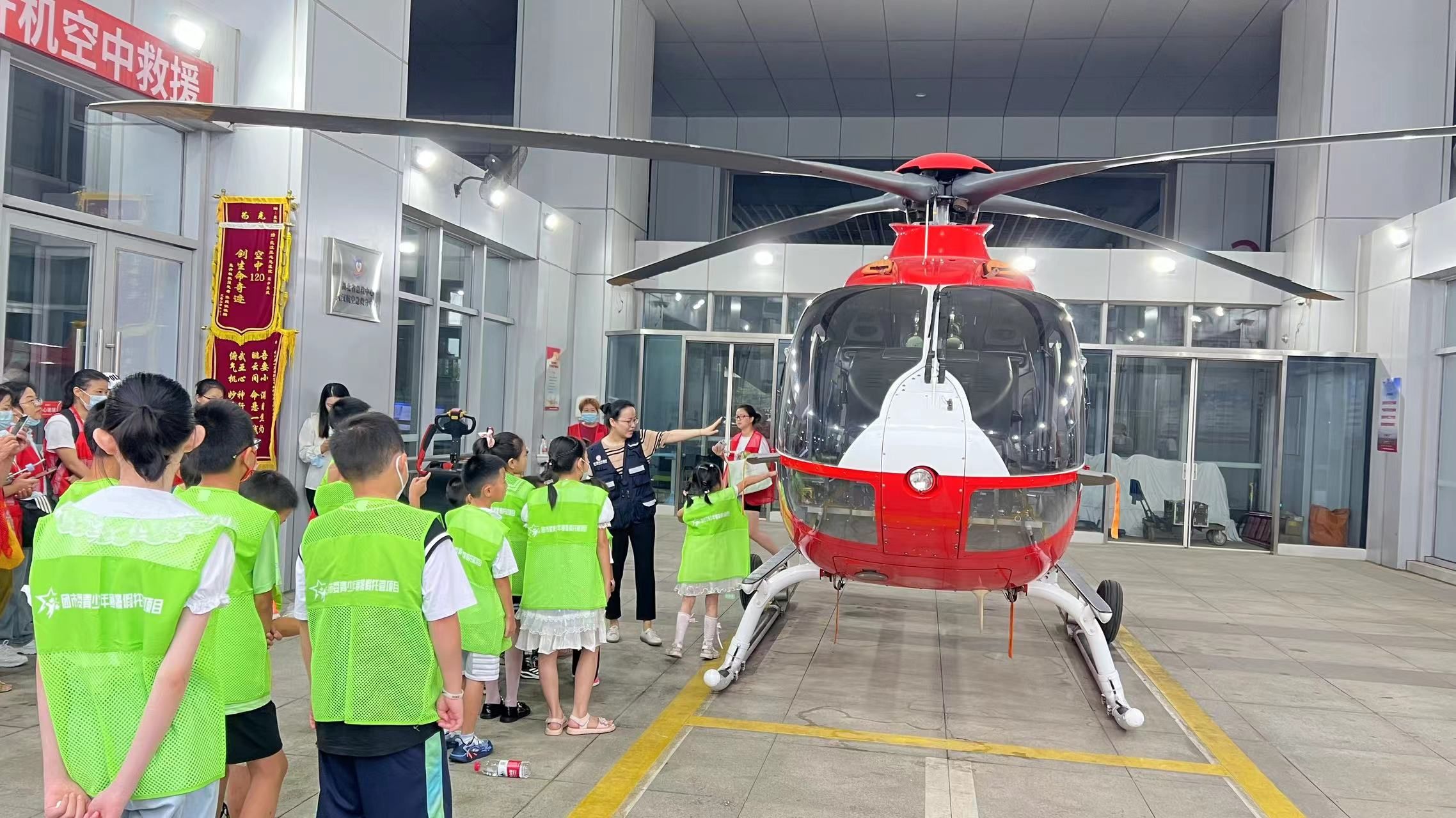 活动现场,大家参观了“亚心一号”救援直升机,了解飞行员如何进行空中救援。