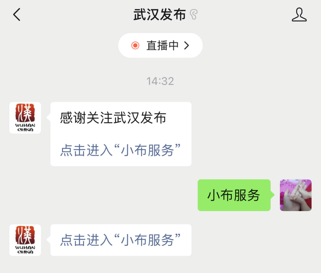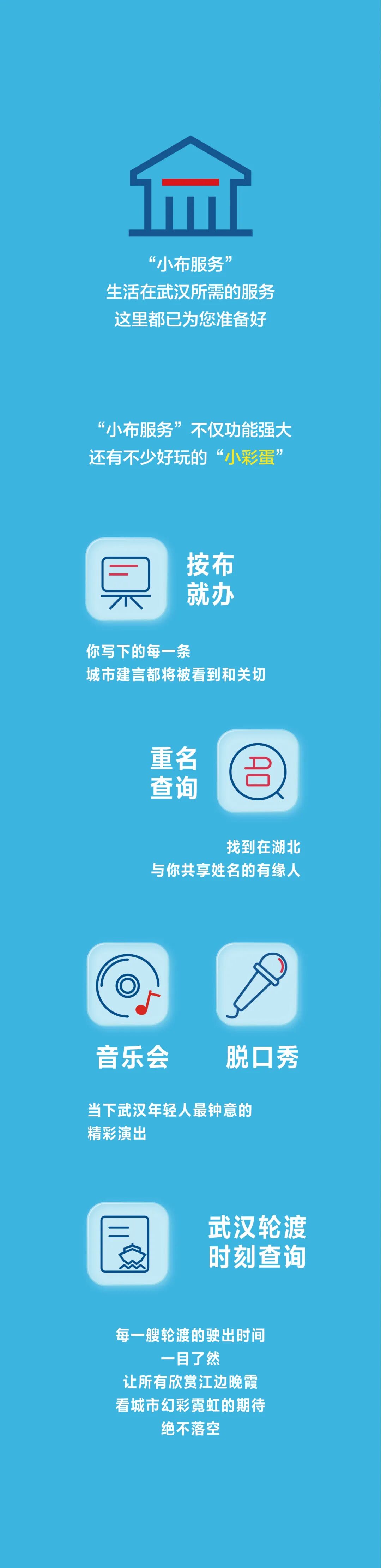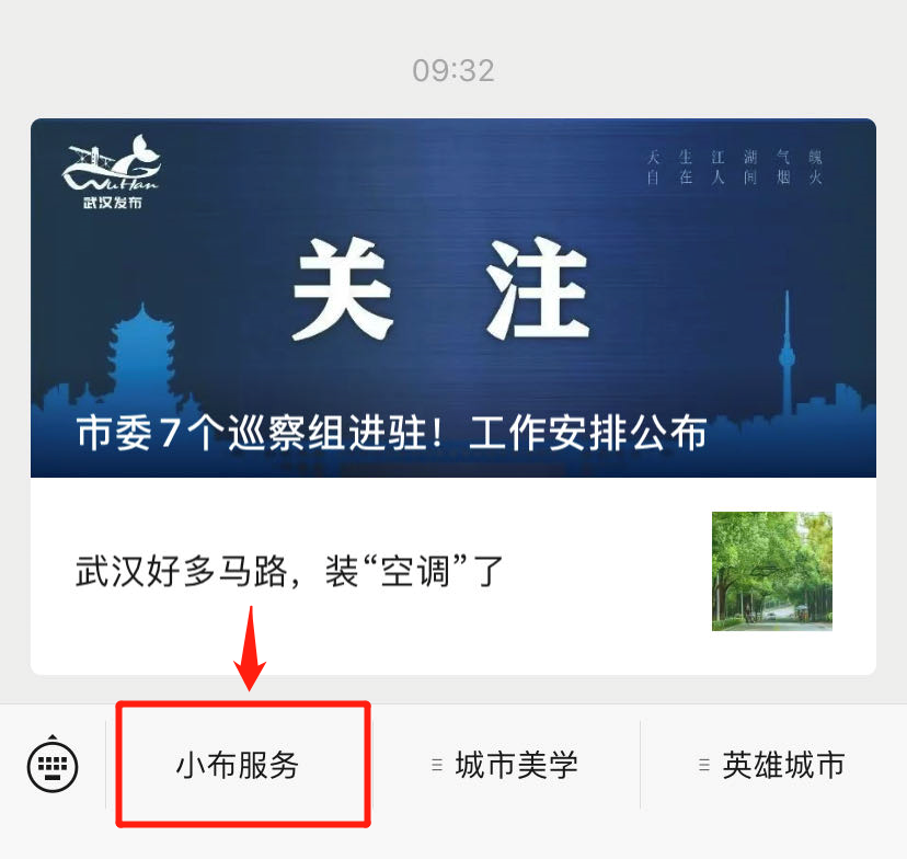 如何找到“小布服务” 便民操作攻略来了↓↓↓ 第一步:点击关注“武汉发布”微信公众号 第二步:新关注用户可直接点击进入”小布服务“,或发送关键词,一键直达。 第三步:点击底部菜单“小布服务”。 第四步:进入“小布服务”服务大厅,点击顶部功能菜单,选择相关功能进入。 来源:武汉发布 【编辑:缑曼】