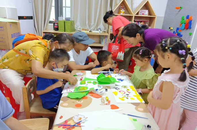 亲子手工环节,每个小朋友在家长的协助下,尽情挥舞着画笔,积极踊跃地展示着自己的画作。