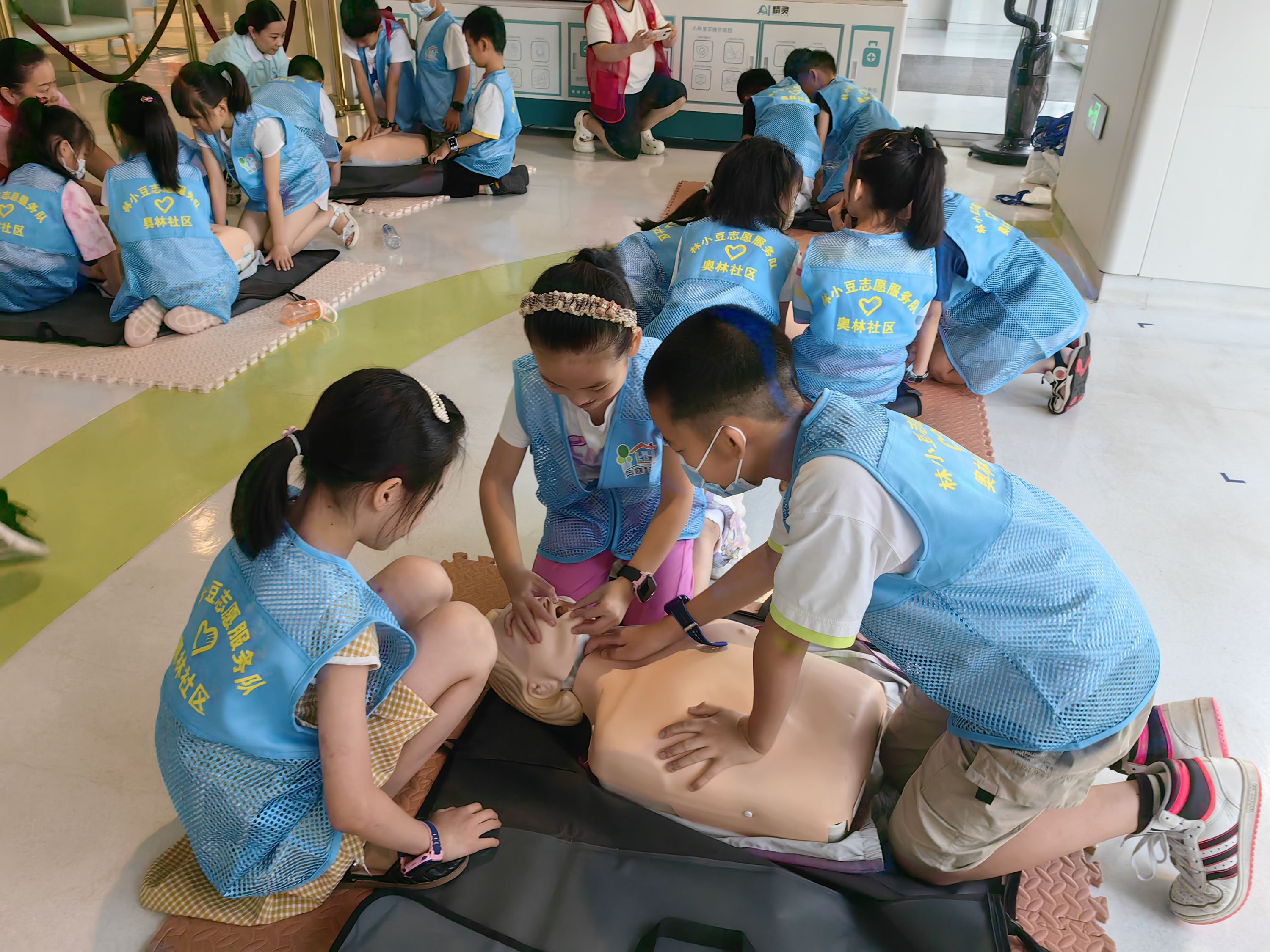 车谷融媒7月25日讯 7月20日,沌阳街道奥林社区携手亚心医院,组织辖区未成年人开展应急救援知识培训。