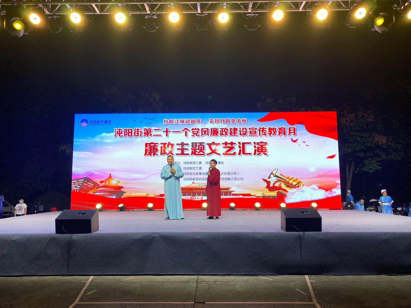 9月18日晚,武汉经开区沌阳街第二十一个党风廉政建设宣传教育月廉政主题文艺汇演在新民社区文体广场举行,吸引800余人现场观看。
