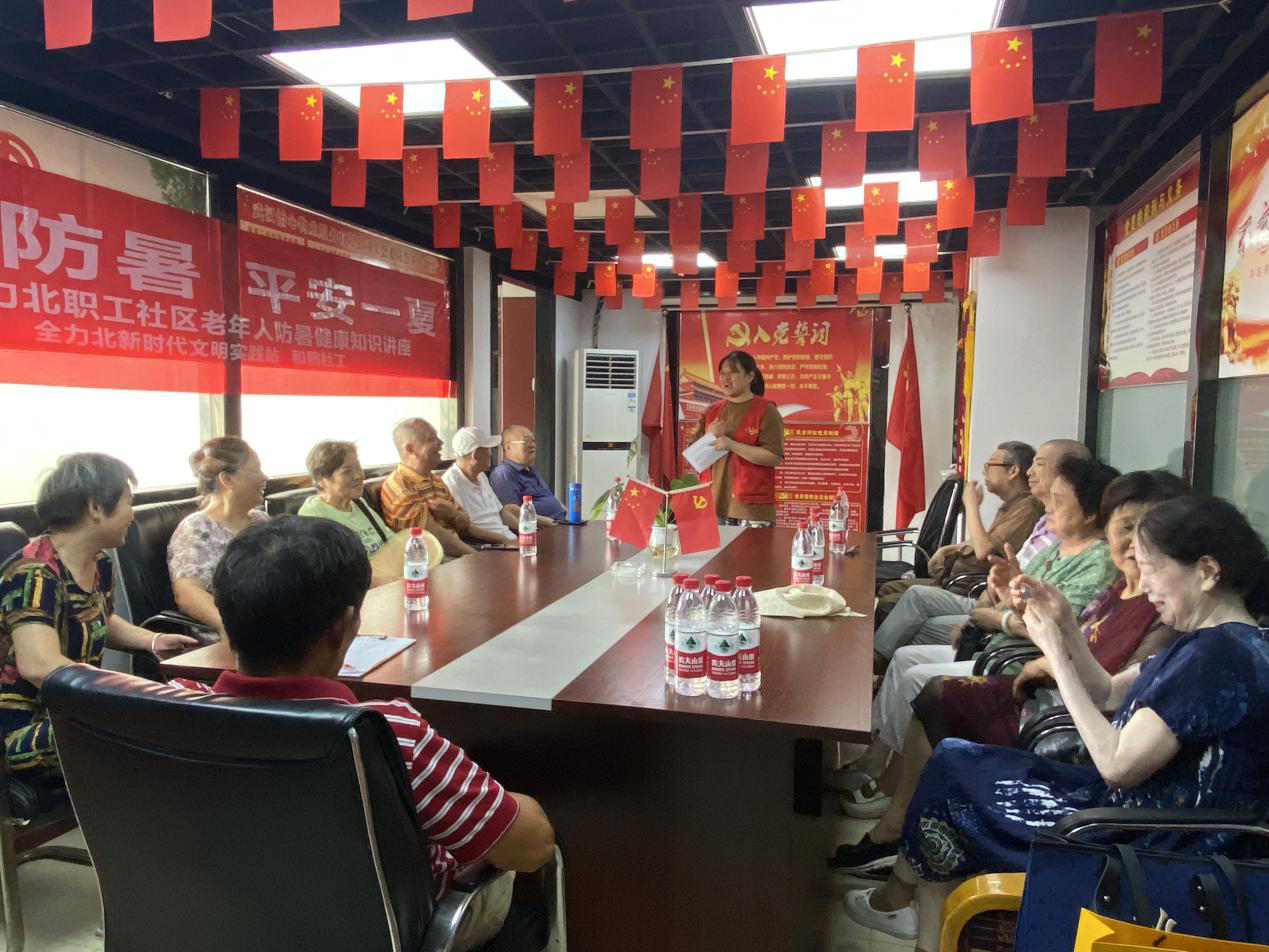 车谷融媒7月26日讯 7月21日,武汉经开区沌阳街道全力北职工社区联合和煦社工开展“科学防暑 平安一夏”老年人防暑健康知识讲座活动,引导老年人学习防暑降温知识,提升自我保护能力,助力老人平安度夏。