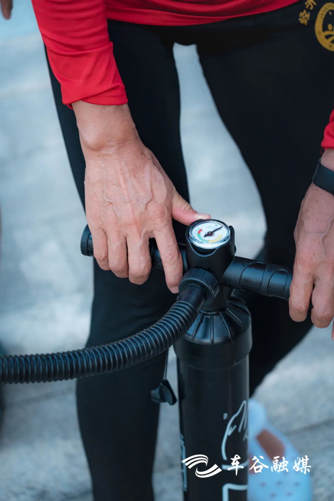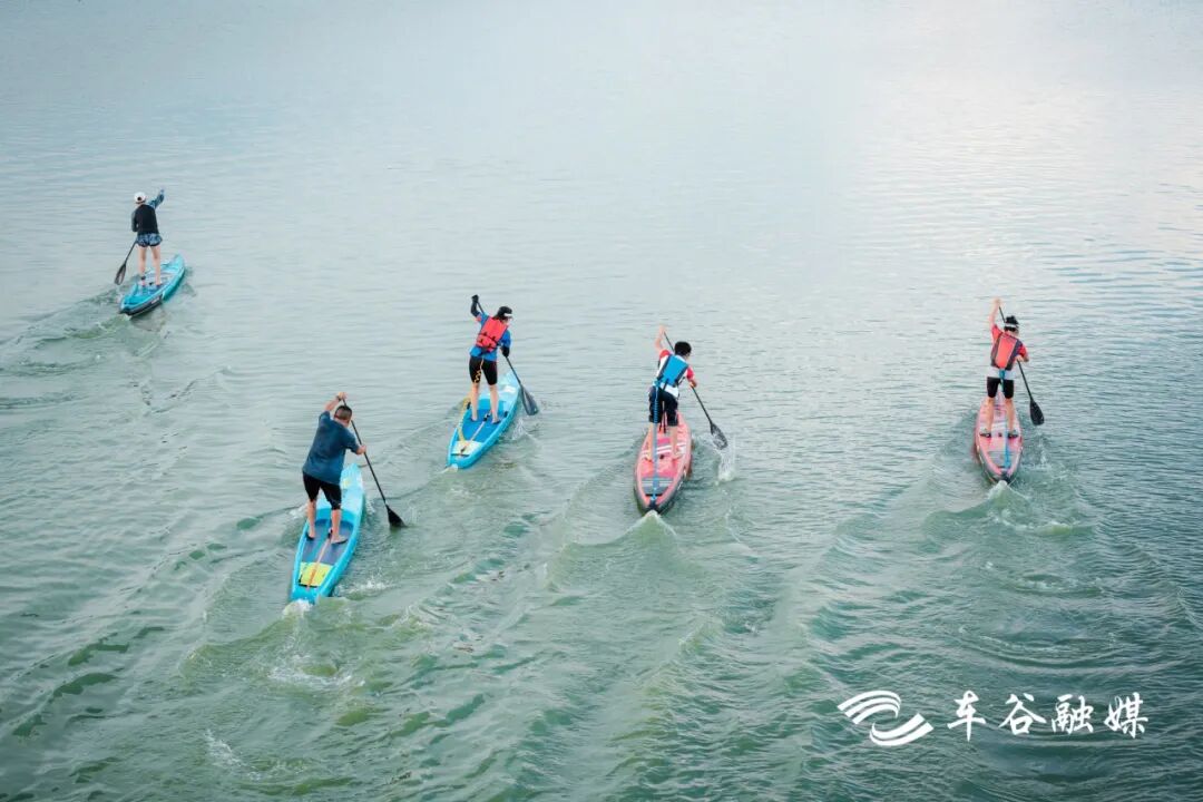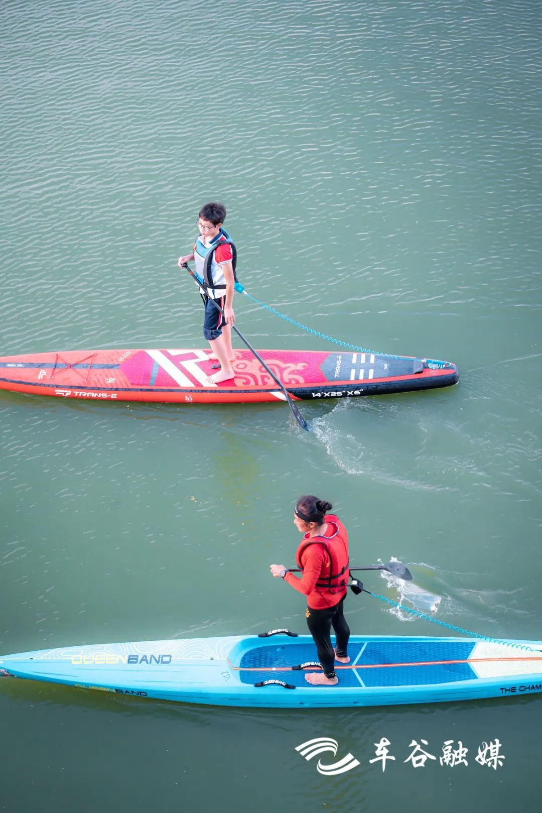 充气、检查、热身,下水。学员们脚下踩着窄窄的板子,手里握着桨杆,好像水面穿梭的游龙,随着他们提升的速度,只看见马影河面荡起一层层水波纹。