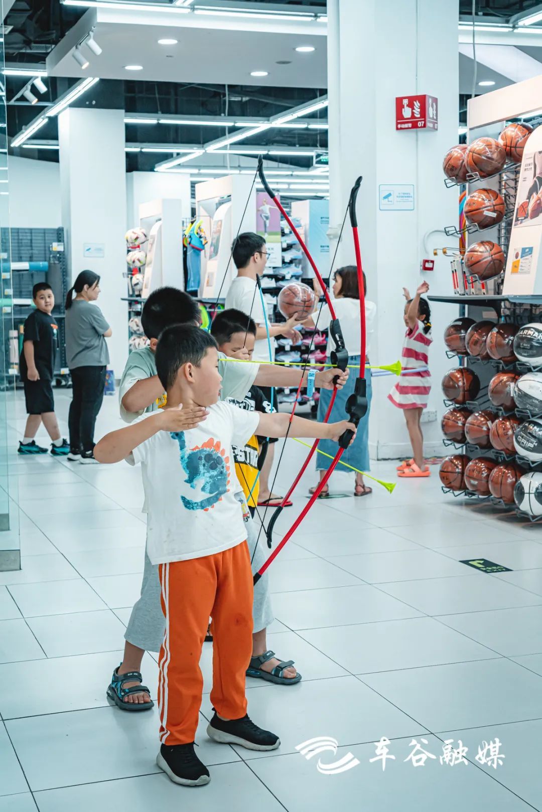 不止矮子馅饼、仟吉蛋糕、好特卖等铺面依旧排着队,迪卡侬内大人小孩选购运动装备,玩得不亦乐乎。