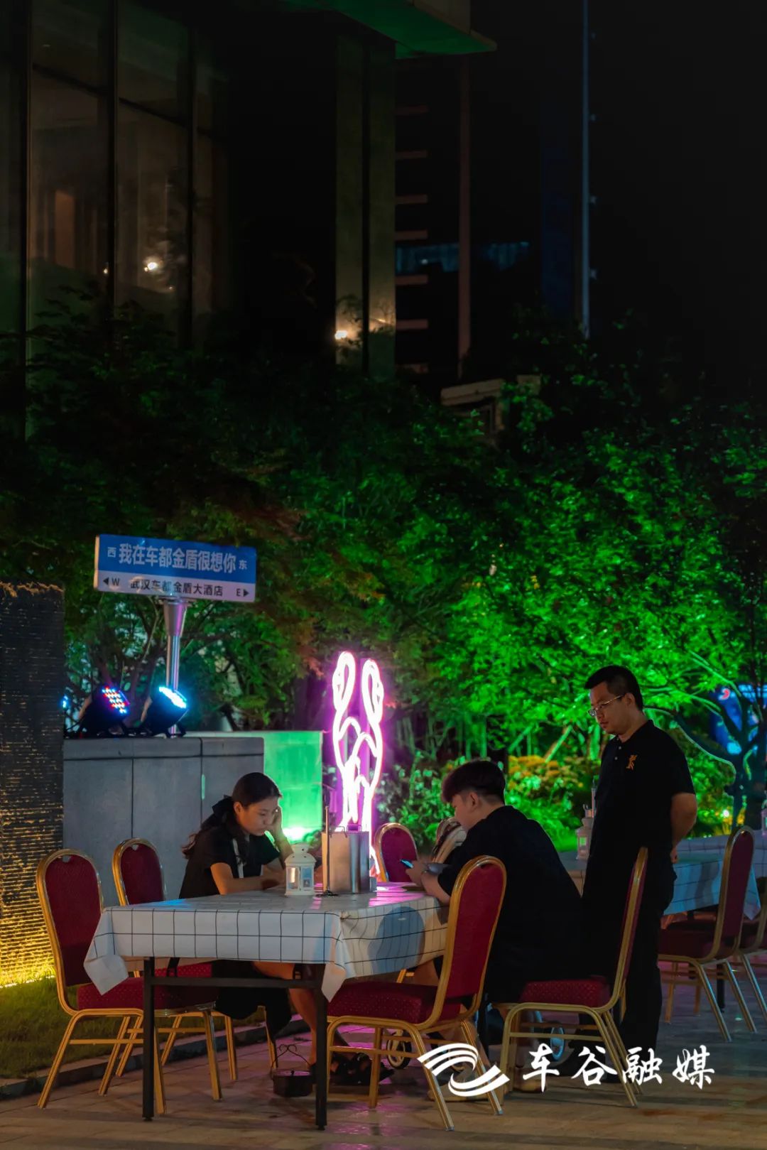 武汉车都金盾大酒店在户外花园里辟出一片天地,开起星级美味,亲民价格的夜市,高峰期食客还需要排队呢。