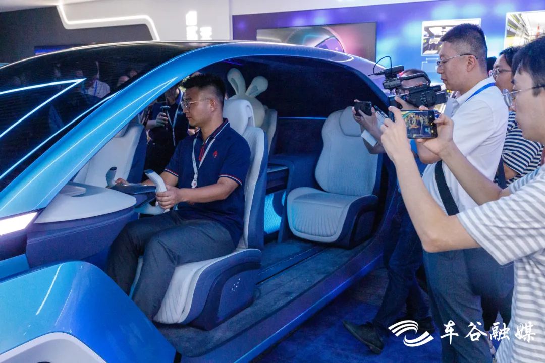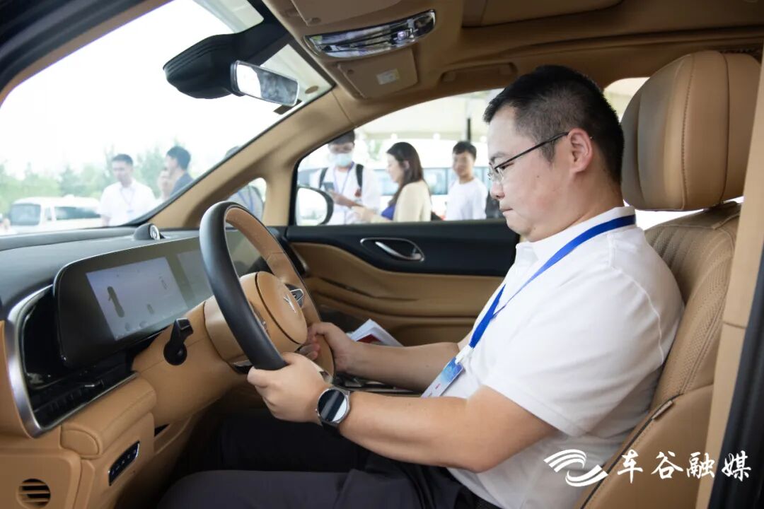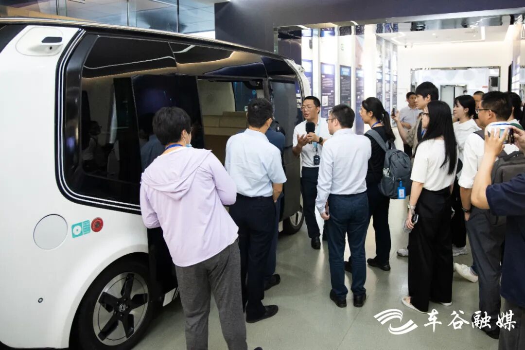 在军山新城的新能源与智能网联示范区展厅,采访团成员仔细了解武汉经开区跨越式发展历程、“二次创业”发展目标、“双智”协同发展等情况,试乘体验了东风悦享自动驾驶巴士、“萝卜快跑”自动驾驶汽车。