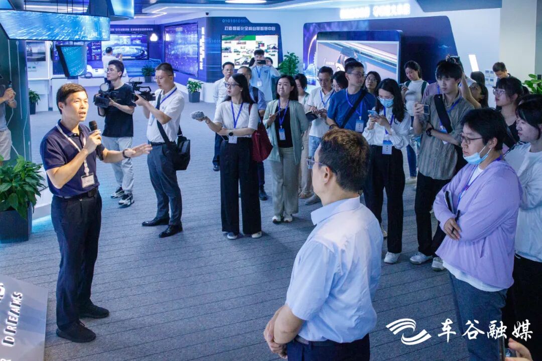 在东风公司技术中心,采访团成员详细了解东风公司实施新能源与智能网联“科技跃迁”行动,掌控新能源与智能网联关键核心技术和核心资源所取得的丰硕成果。