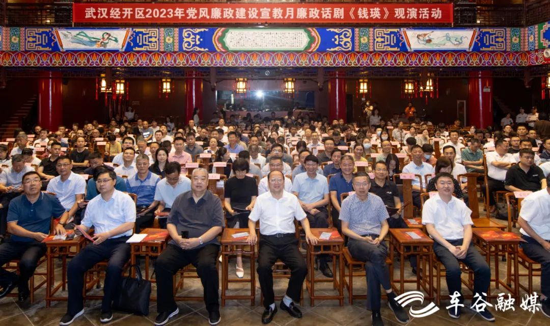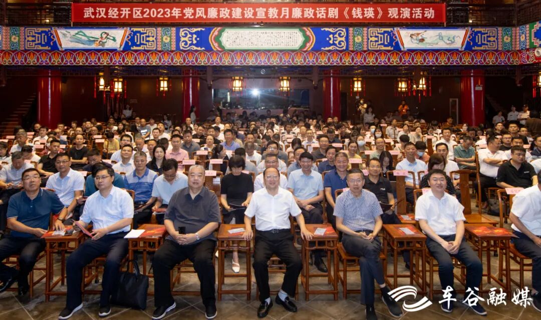 武汉经开区近400名党员干部现场观看演出,同上一堂生动的廉政党课。市委常委、武汉经开区工委书记刘子清到场观看演出。