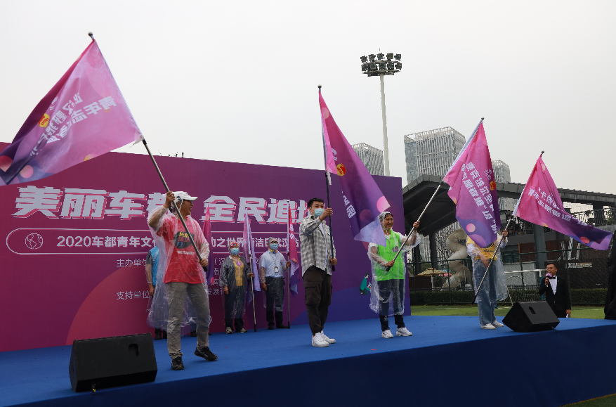 来自全区各行各业共计700余人组成的12支志愿者团队在此集结,他们以足球公园周边各类垃圾为清理目标,简短仪式后,迅速奔往各自“战场”,为“世界清洁日”活动贡献车都力量!