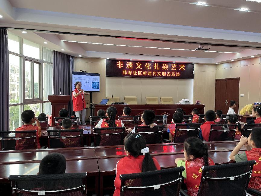 车谷融媒8月1日讯 近日,沌阳街道薛峰社区在社区新时代文明实践站开展“自然而‘染’‘布’同凡响”主题扎染活动。