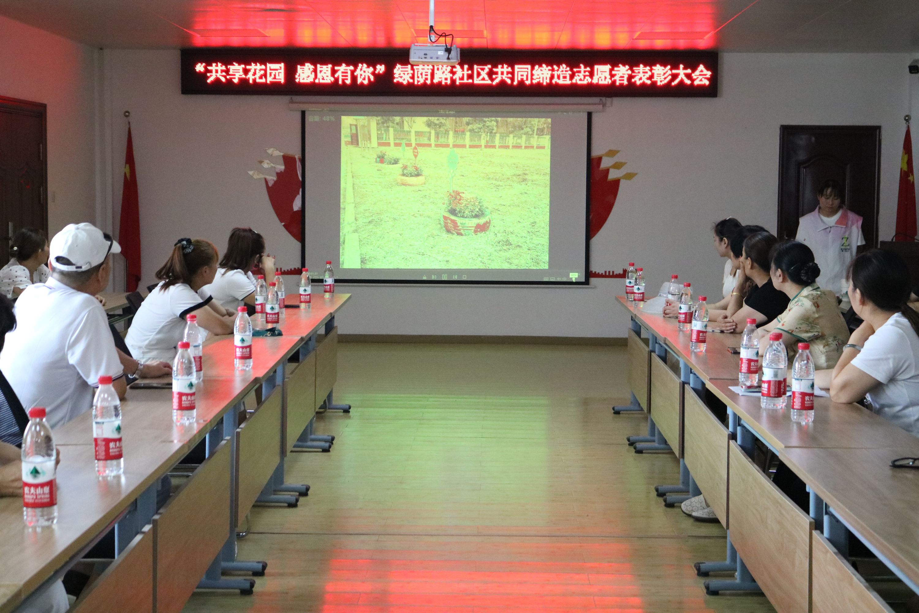 车谷融媒8月3日讯 8月1日上午,湘口街道绿荫路社区开展了以“共享花园 感恩有你”为主题的共同缔造志愿者表彰暨居民议事会活动,30余名志愿者和共建单位优秀代表参会。