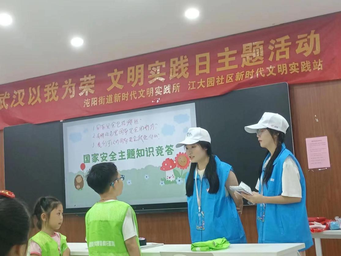 为提高青少年国家安全意识,7月17日,社区联合江汉大学人文学院志愿服务队开展国家安全主题知识宣讲。志愿者播放国家安全科普视频,用生动有趣的事例向孩子们讲明白国家安全。现场还以知识竞答的方式,加深孩子们对国家安全知识的印象。