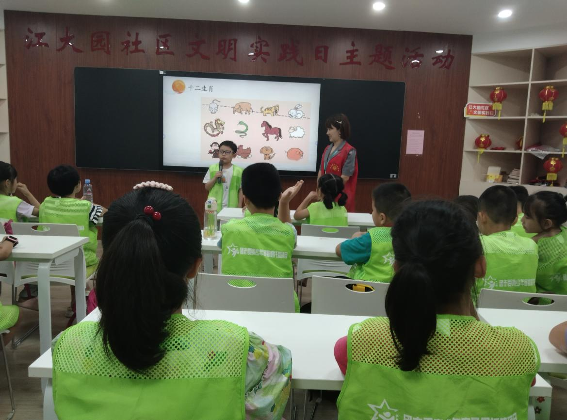 7月25日,“品味国学经典 传承中华文化”主题活动则带领孩子们体验了国学的魅力。在《十二生肖》讲解中,志愿老师通过故事讲述十二生肖的起源与十二地支的关系,引用生活中的小故事启发大家对古今的思考,以及对中华民族传统文化源远流长的感悟,营造良好的社区文化氛围。